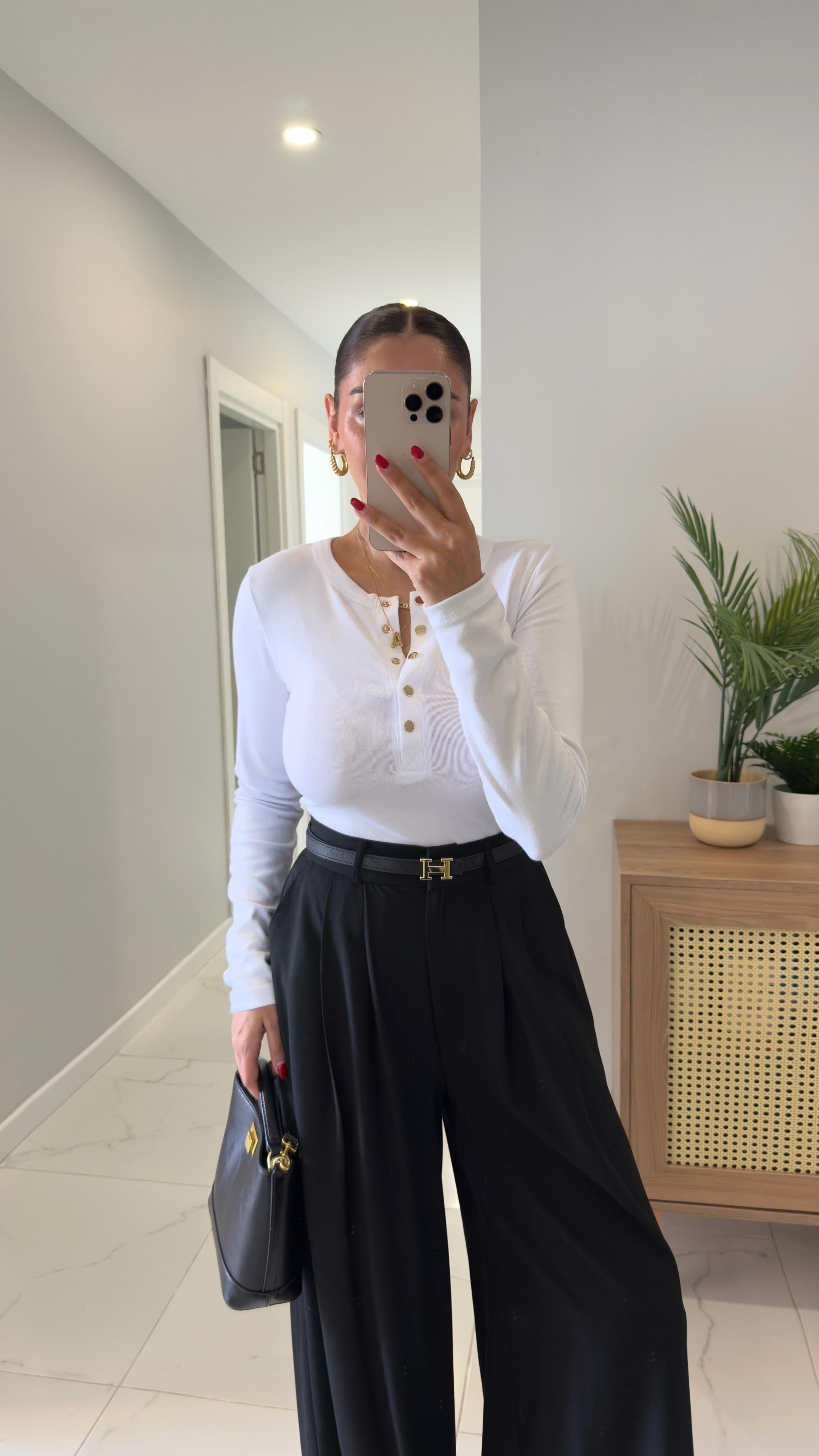 Benry Beyaz Çıtçıt Detaylı Uzun Kol Bluz (BLZ111-BYZ)