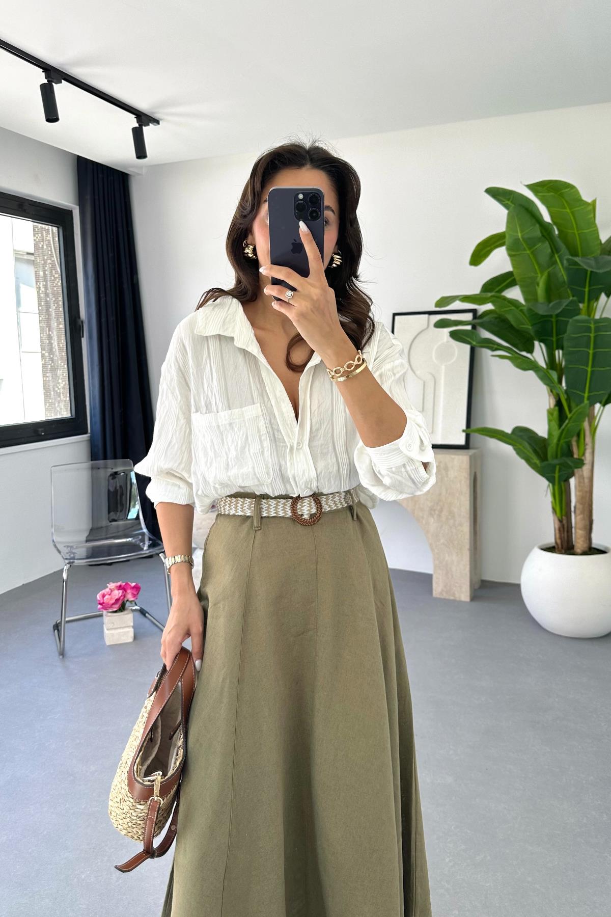 Denta Beyaz Kendinden Çizgili Gömlek (GMLK287)