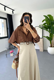 Denta Kahve Kendinden Çizgili Gömlek (GMLK286)