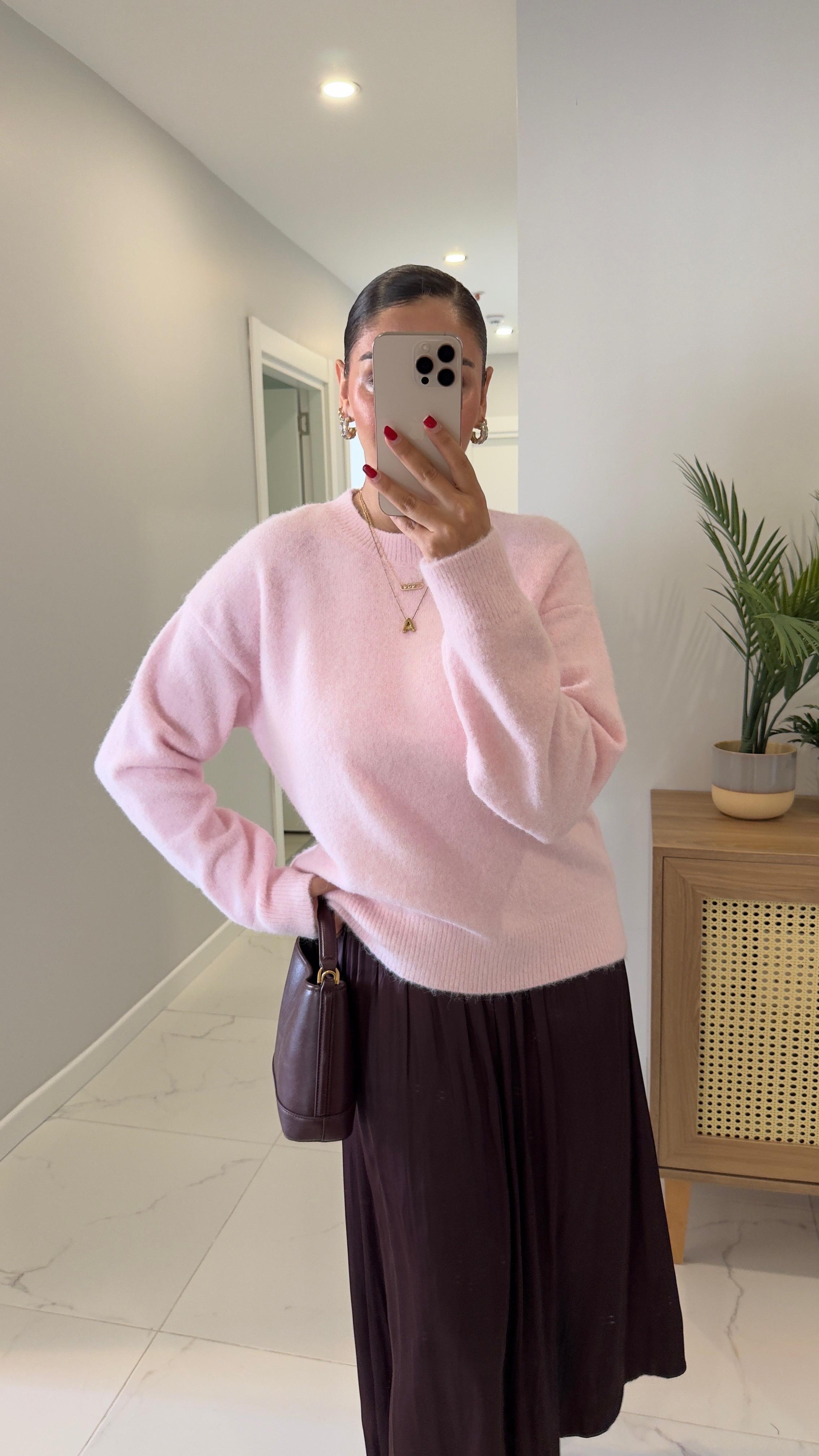 Dilvin Candy Pembe Bisiklet Yaka Yumuşak Dokulu Triko (TRK524-PMB)