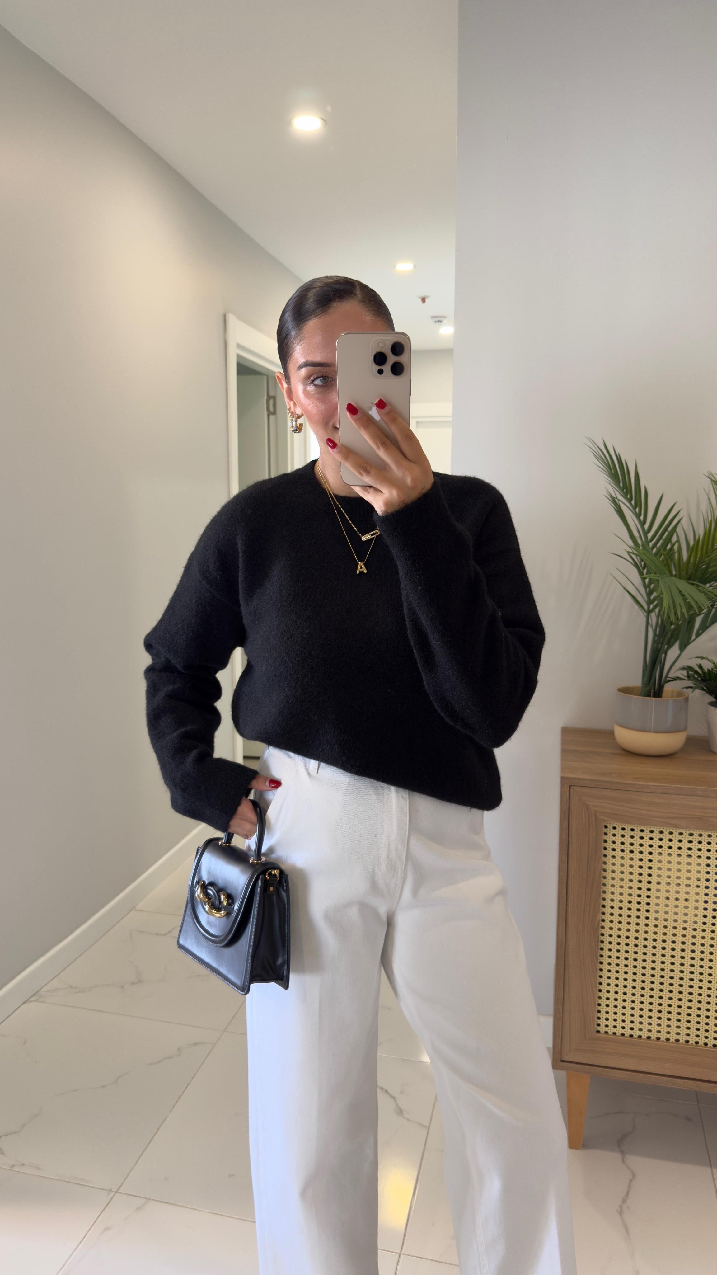 Dilvin Candy Siyah Bisiklet Yaka Yumuşak Dokulu Triko (TRK524-SYH)