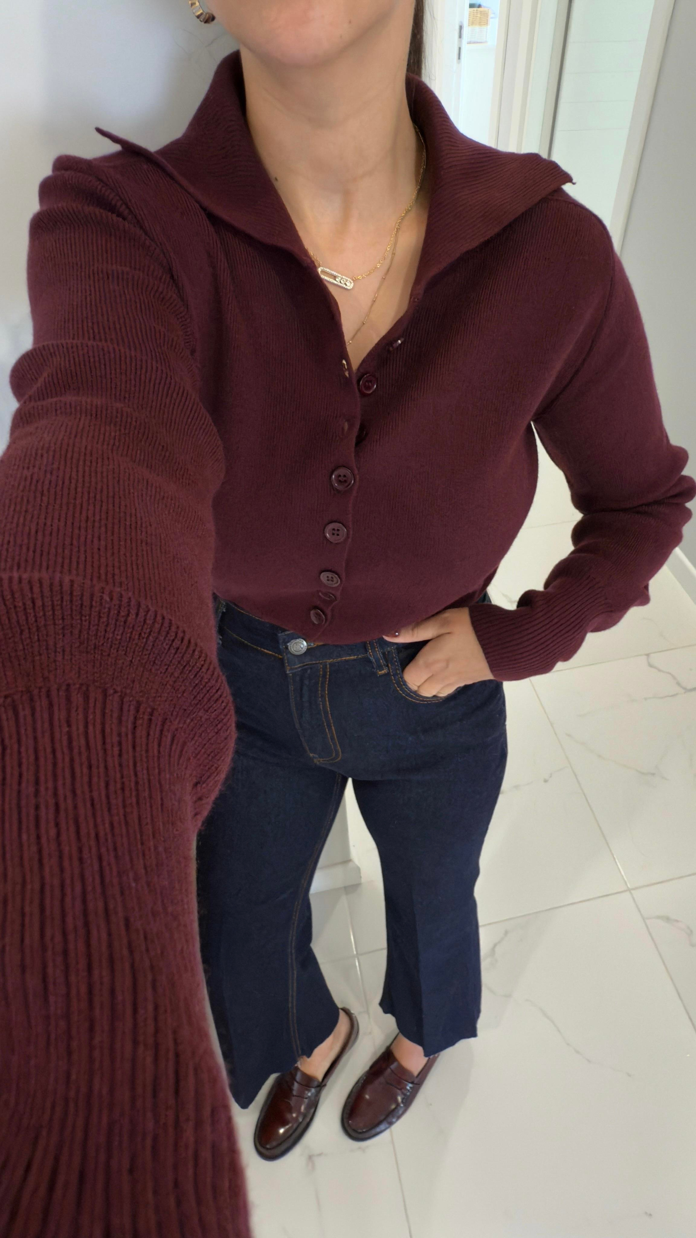 Dilvin Cleo Bordo Polo Yaka Düğmeli Triko