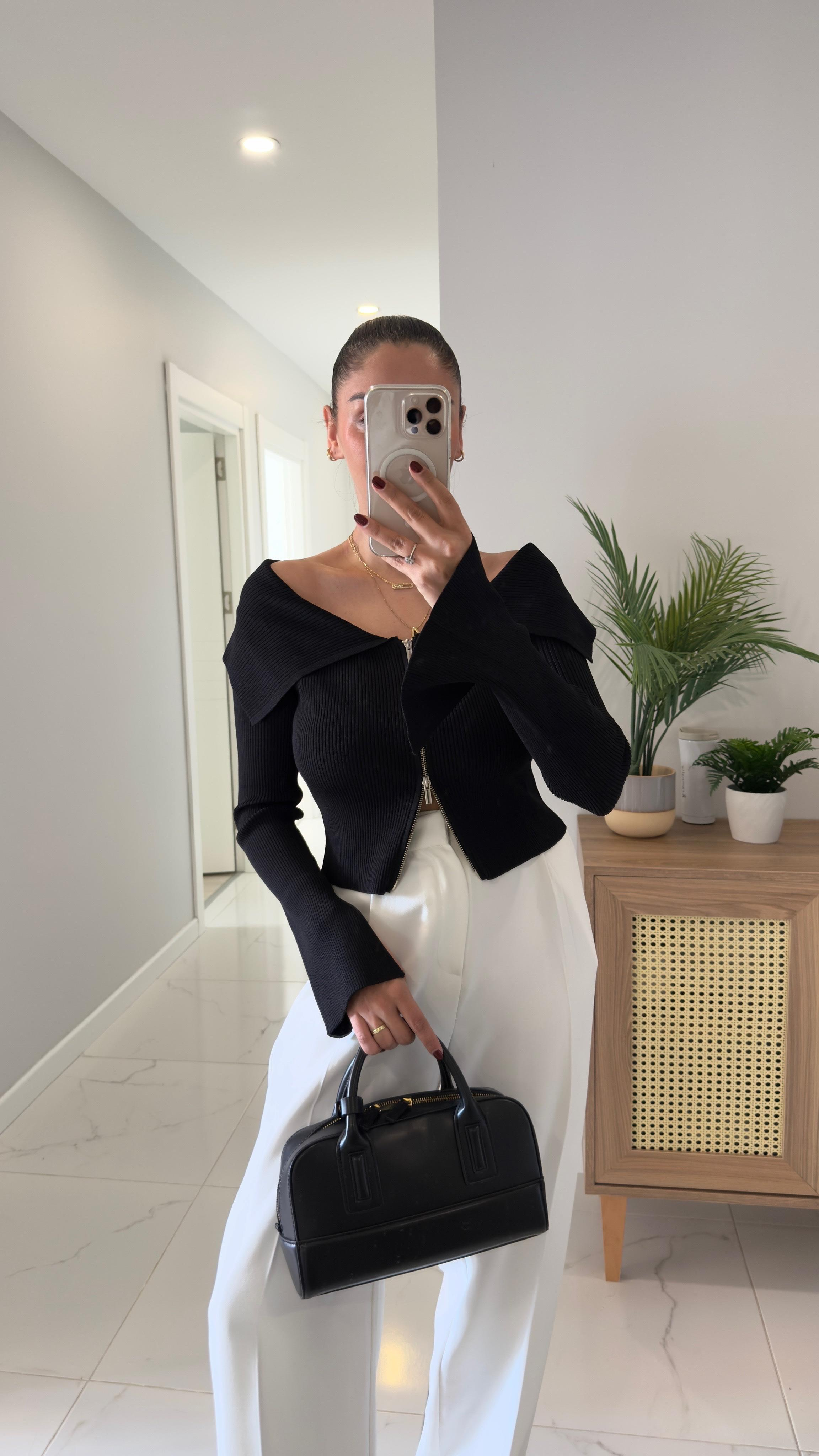 Dilvin Dos Siyah Kol Yırtmaç Detaylı Fermuarlı Hırka (HRK286-SYH)