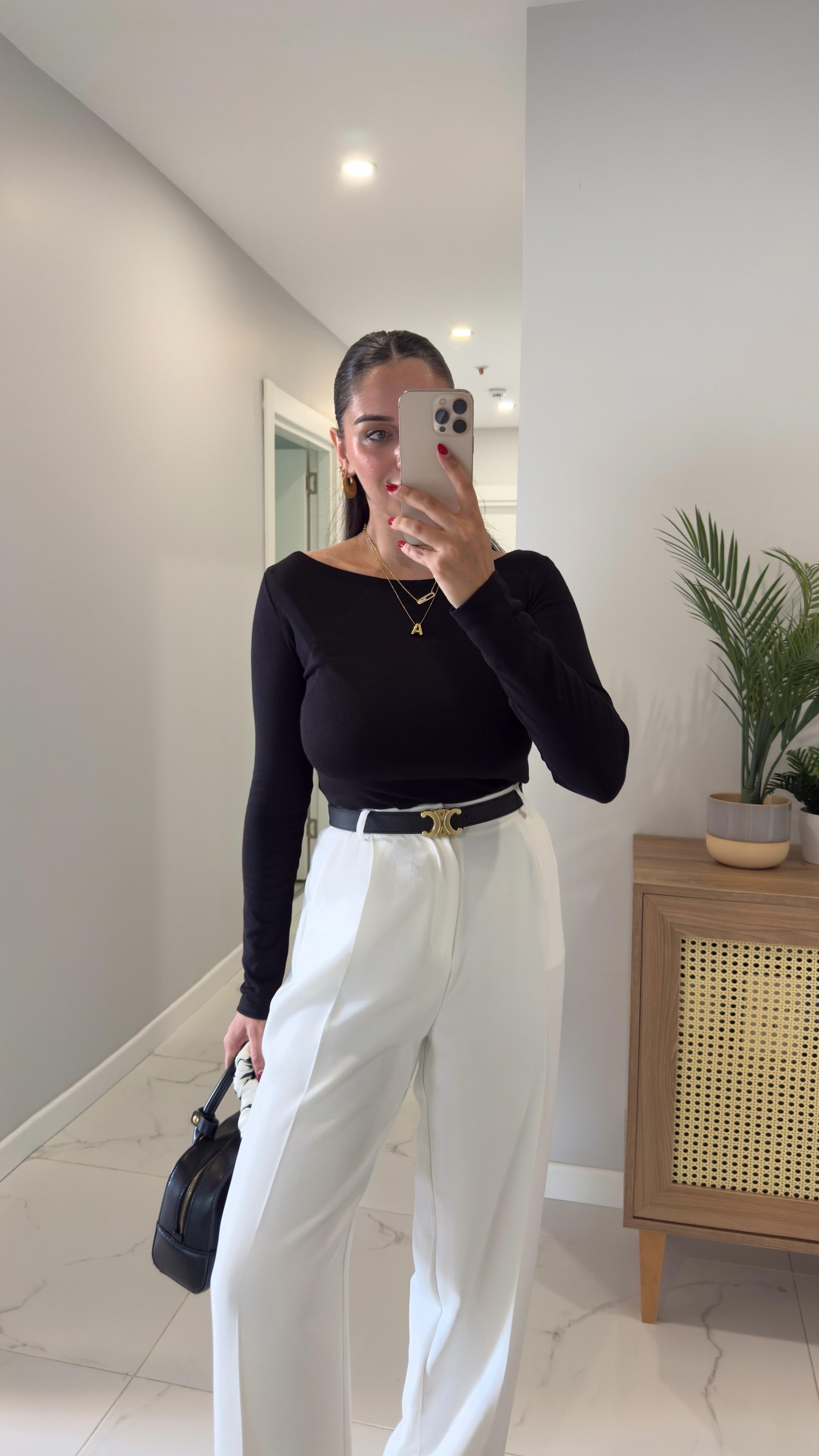 Dilvin Gus Siyah Kayık Yaka Uzun Kol Bluz