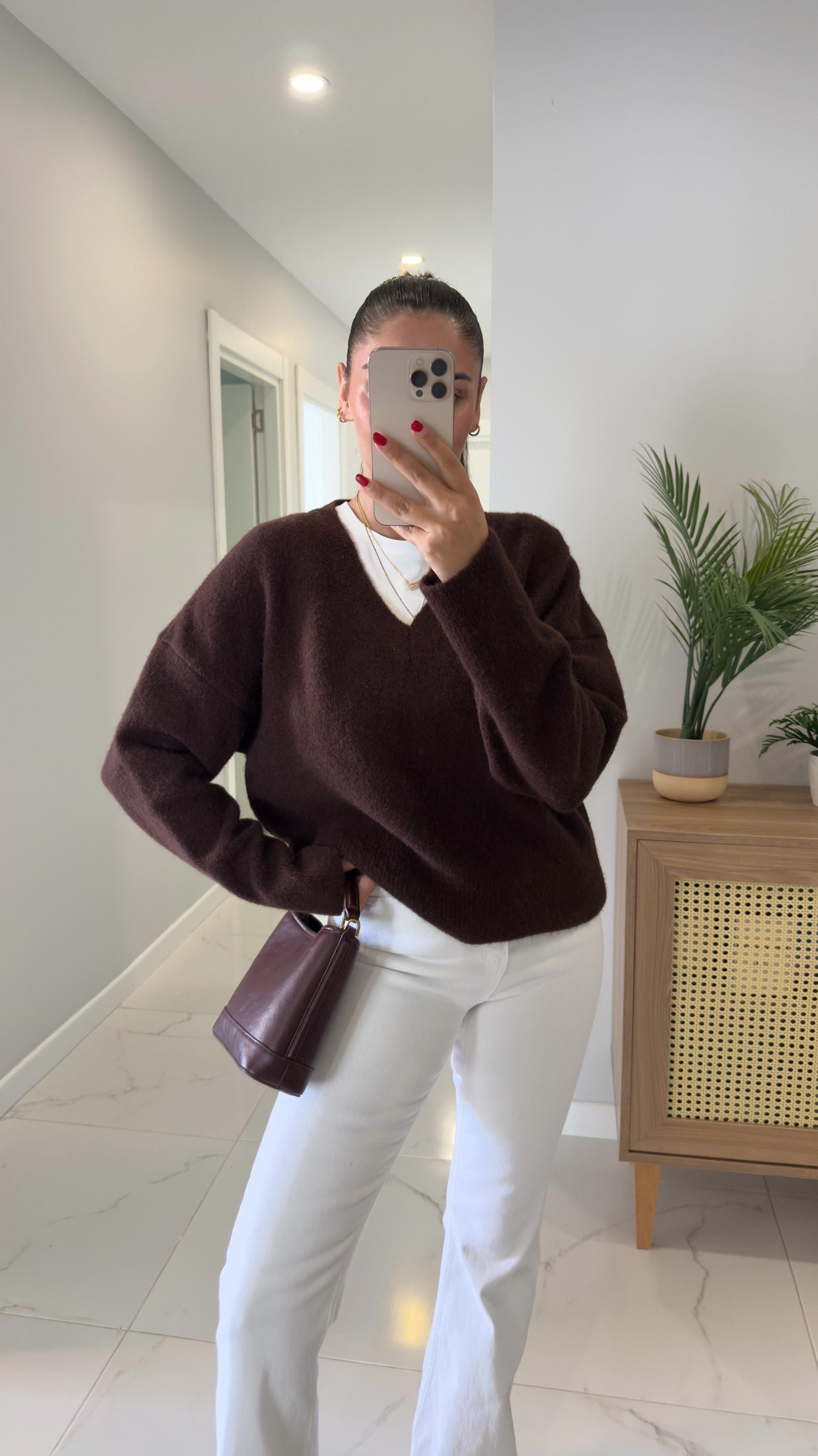 Dilvin Lansow Kahve V Yaka Yumuşak Dokulu Triko (TRK526-KHV)