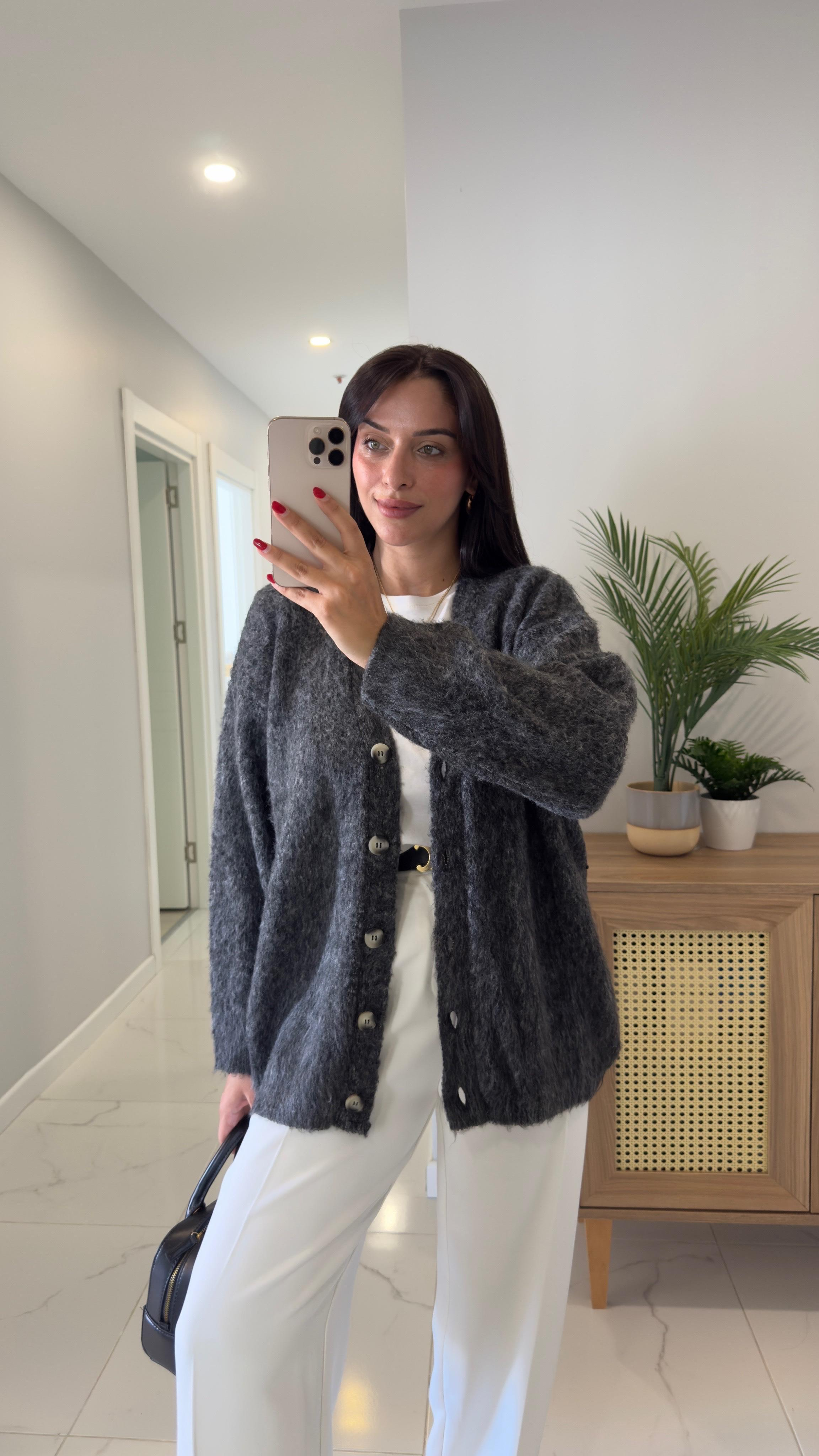 Dilvin Molde Antrasit Şardonlu Düğmeli Hırka (HRK262-ANTRST)