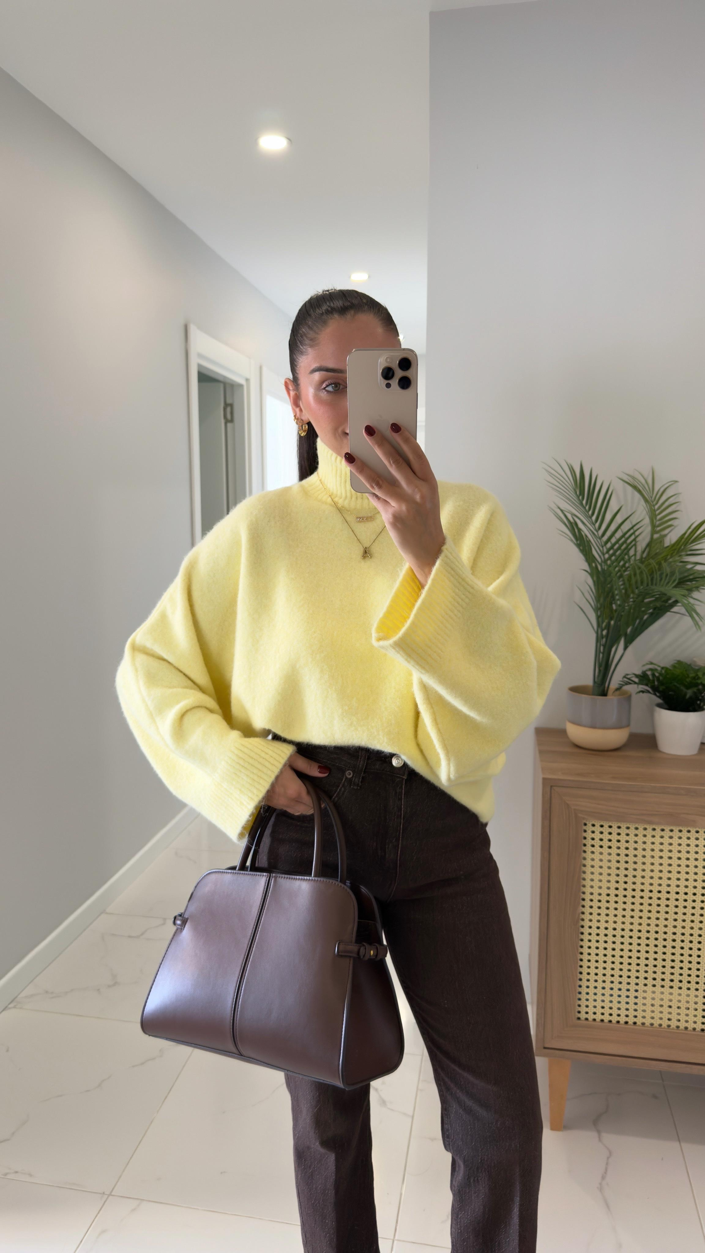 Dilvin Nivra Sarı Yarasa Kol Triko