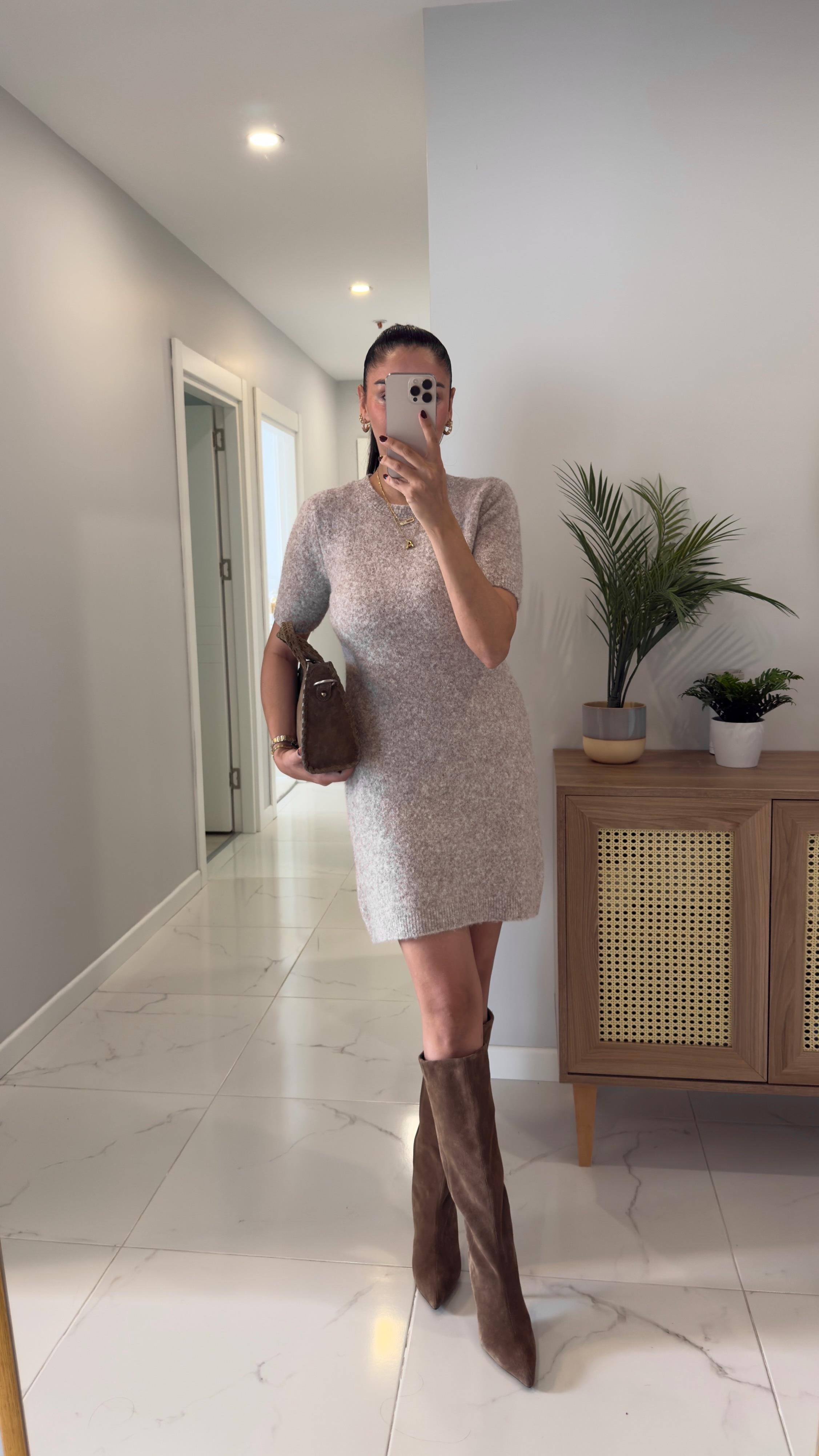 Dilvin Nusa Füme Melanj Kısa Kol Yumuşak Dokulu Elbise Dilvin Nusa Kahve Melanj Kısa Kol Yumuşak Dokulu Elbise