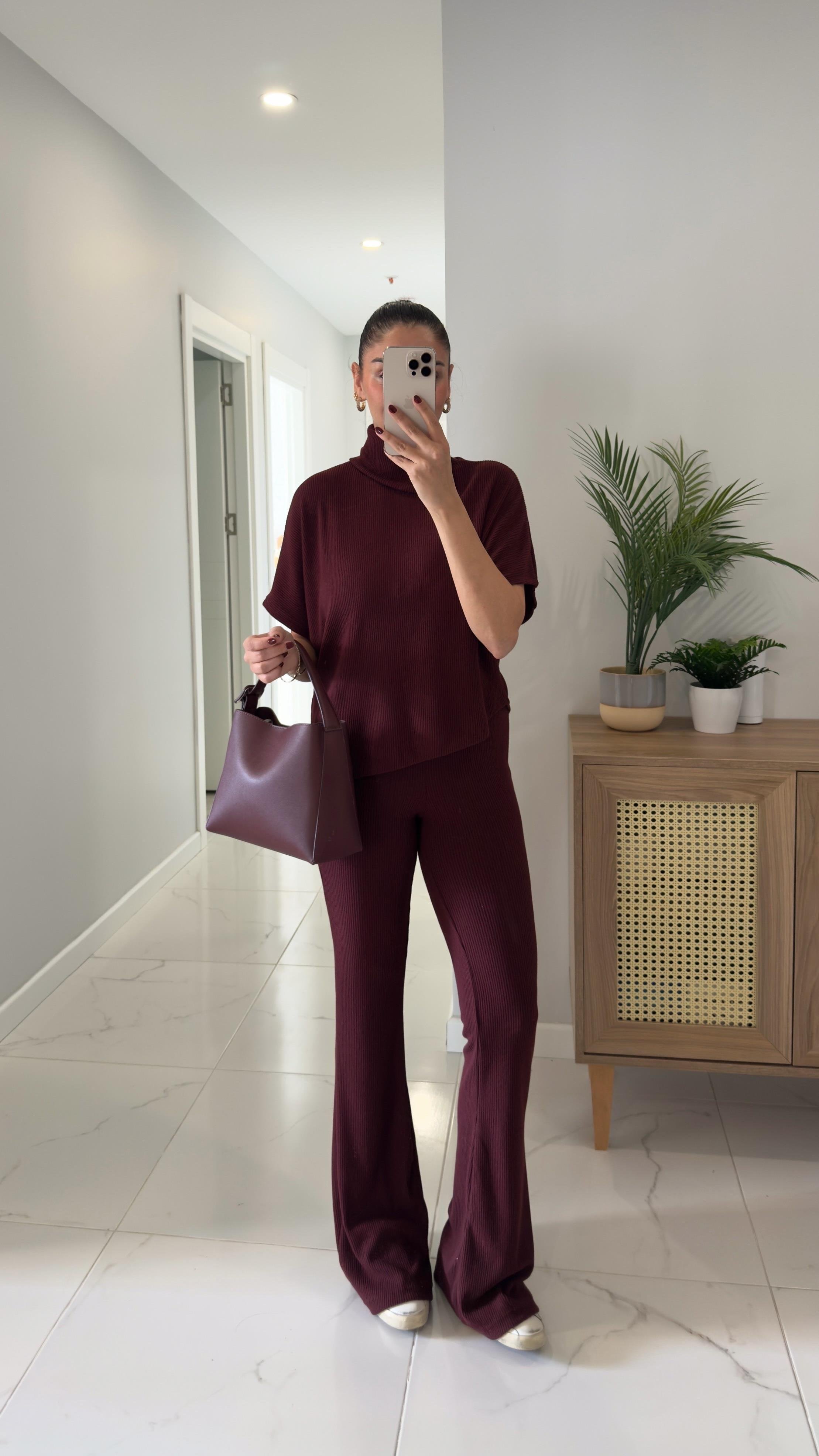 Dilvin Sia Bordo Asimetrik Kesim Örme Pantolon Takım (TKM530-BRD)
