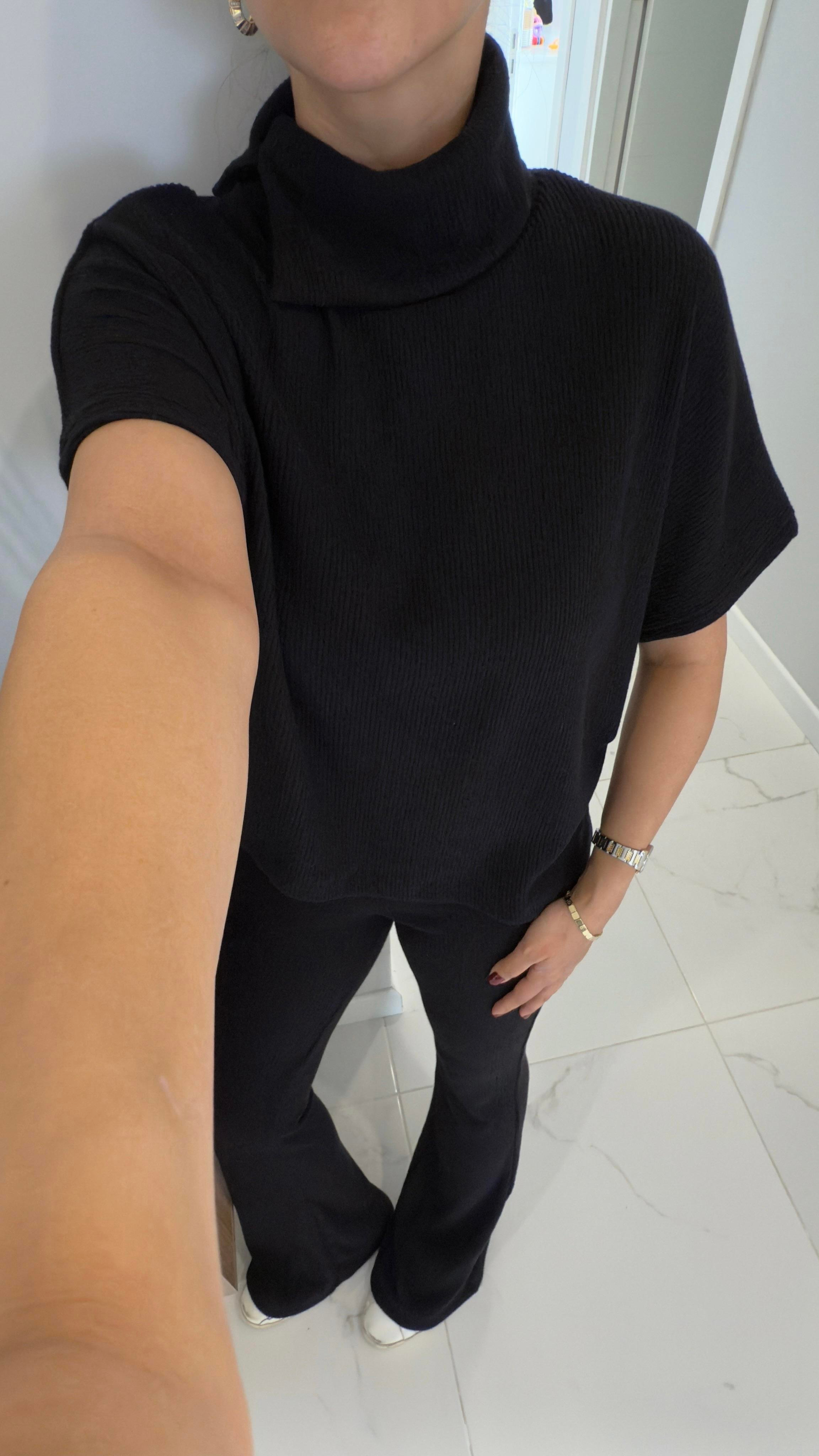 Dilvin Sia Siyah Asimetrik Kesim Örme Pantolon Takım