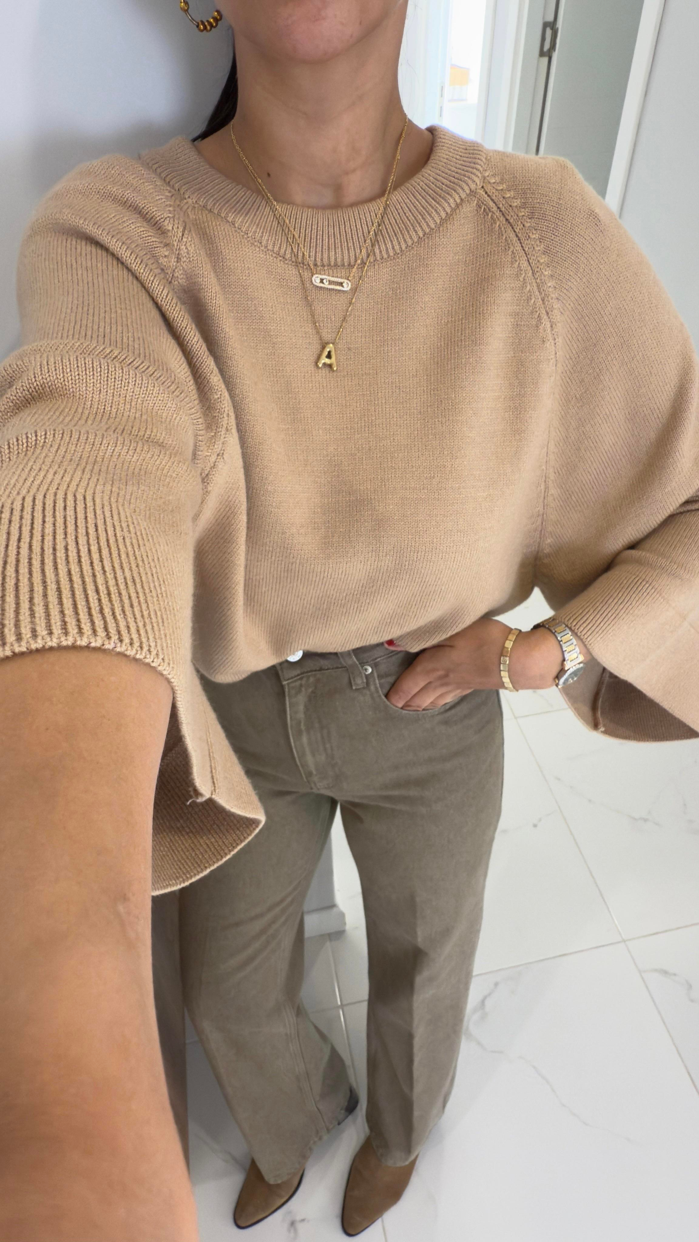 Dilvin Sorenya Koyu Bej Geniş Kol Triko (TRK549-KYBEJ)
