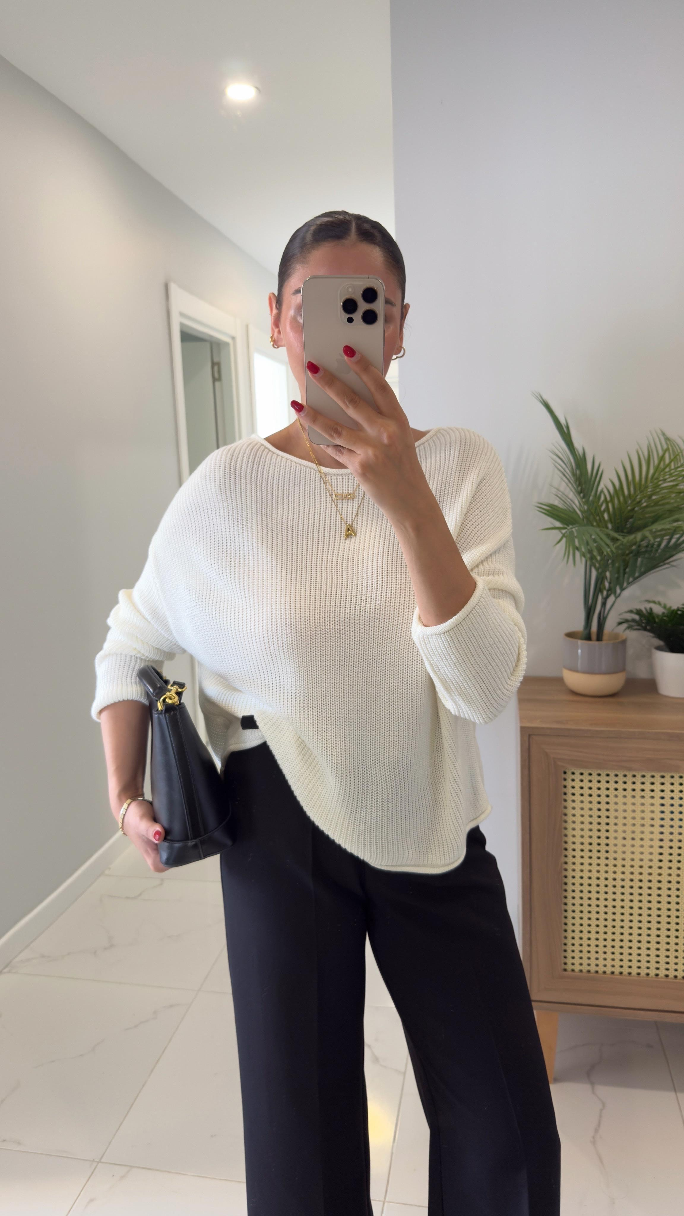 Dilvin Soriel Ekru Kayık Yaka Basic Triko (TRK548-EKR)