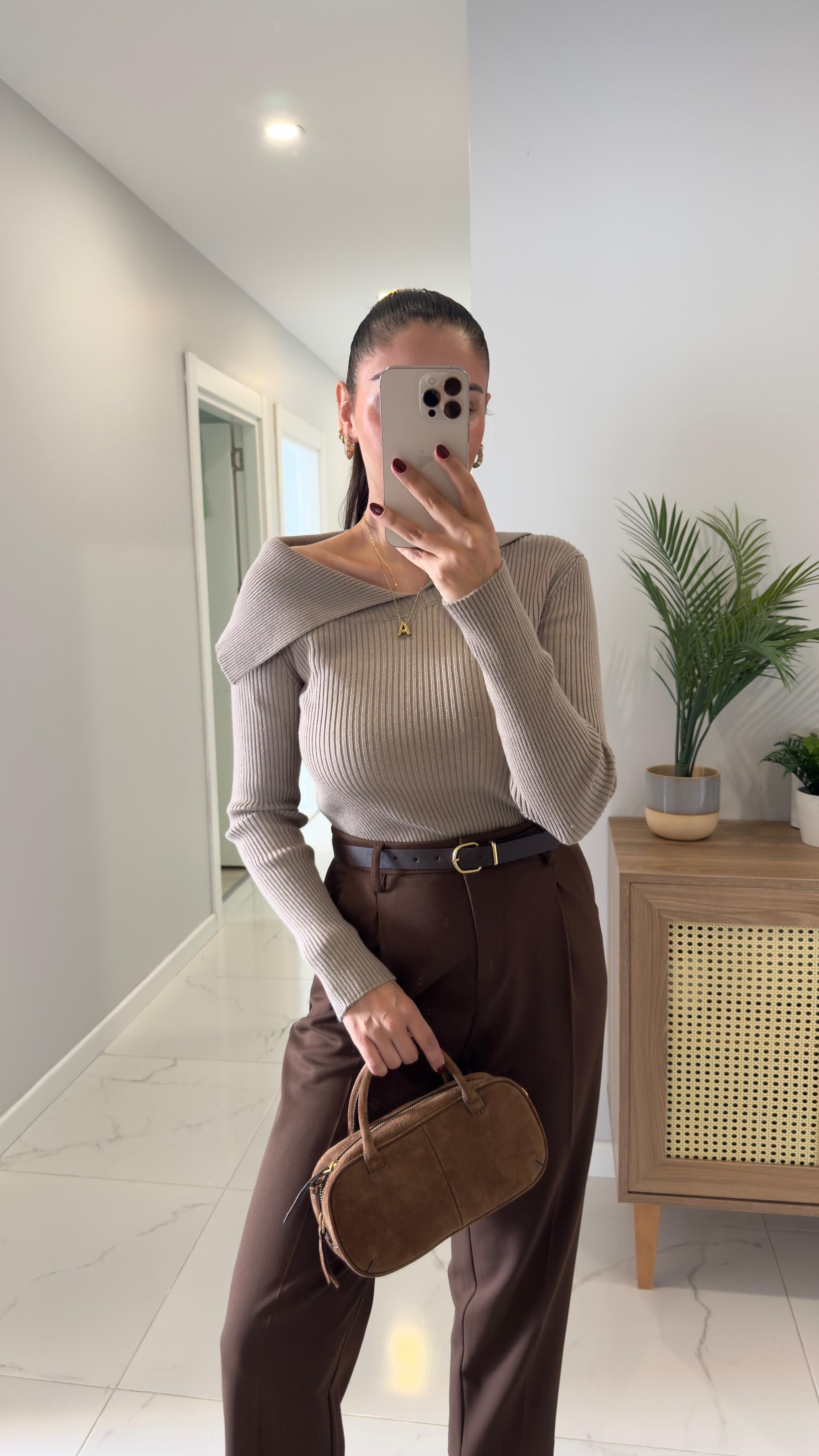 Dilvin Yonsa Koyu Vizon Asimetrik Yaka Triko (TRK554-KYVZN)