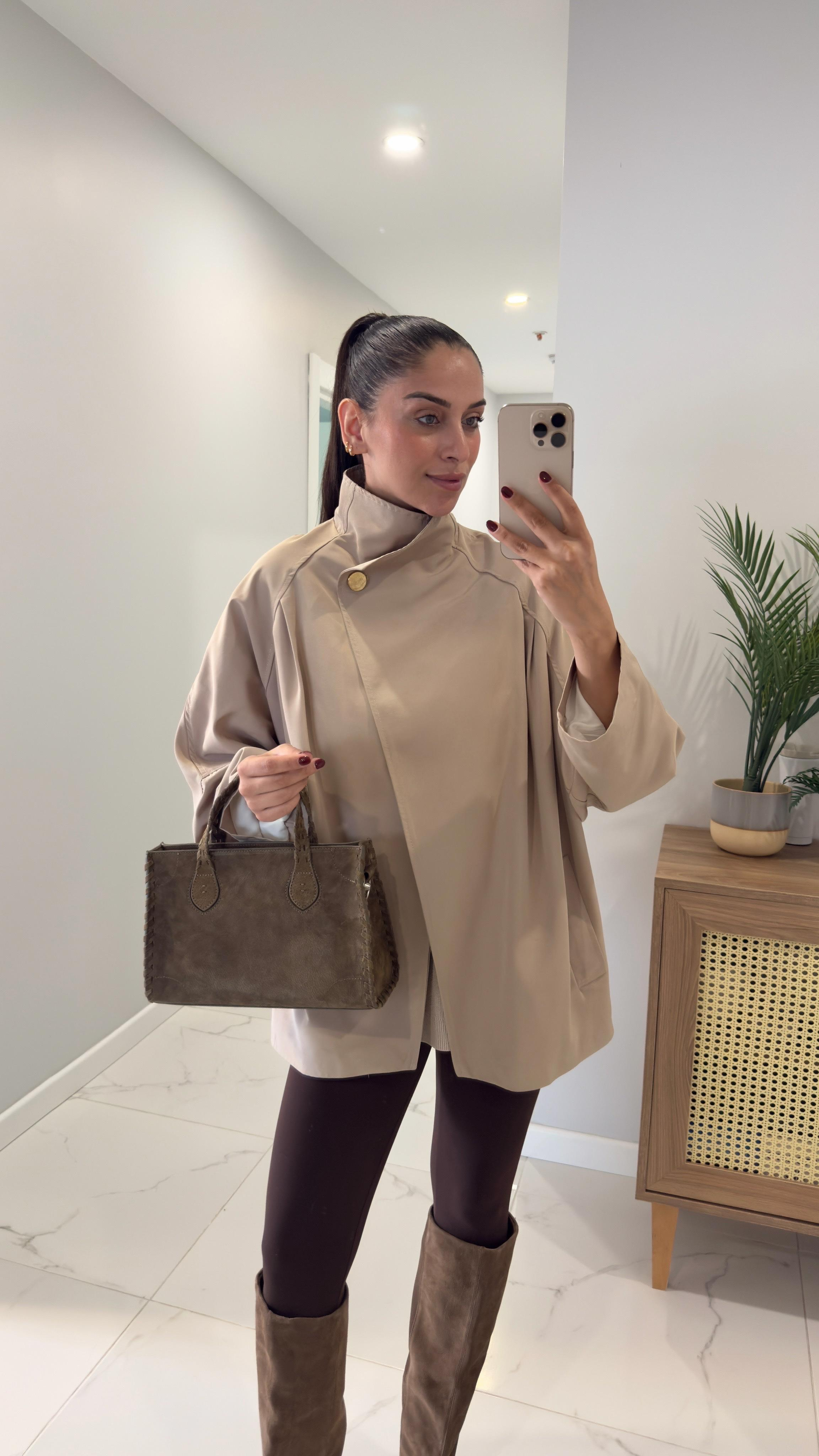 Glowe Taba Dik Yaka Gold Düğme Detaylı Trençkot Glowe Lacivert Dik Yaka Gold Düğme Detaylı Trençkot Glowe Haki Dik Yaka Gold Düğme Detaylı Trençkot