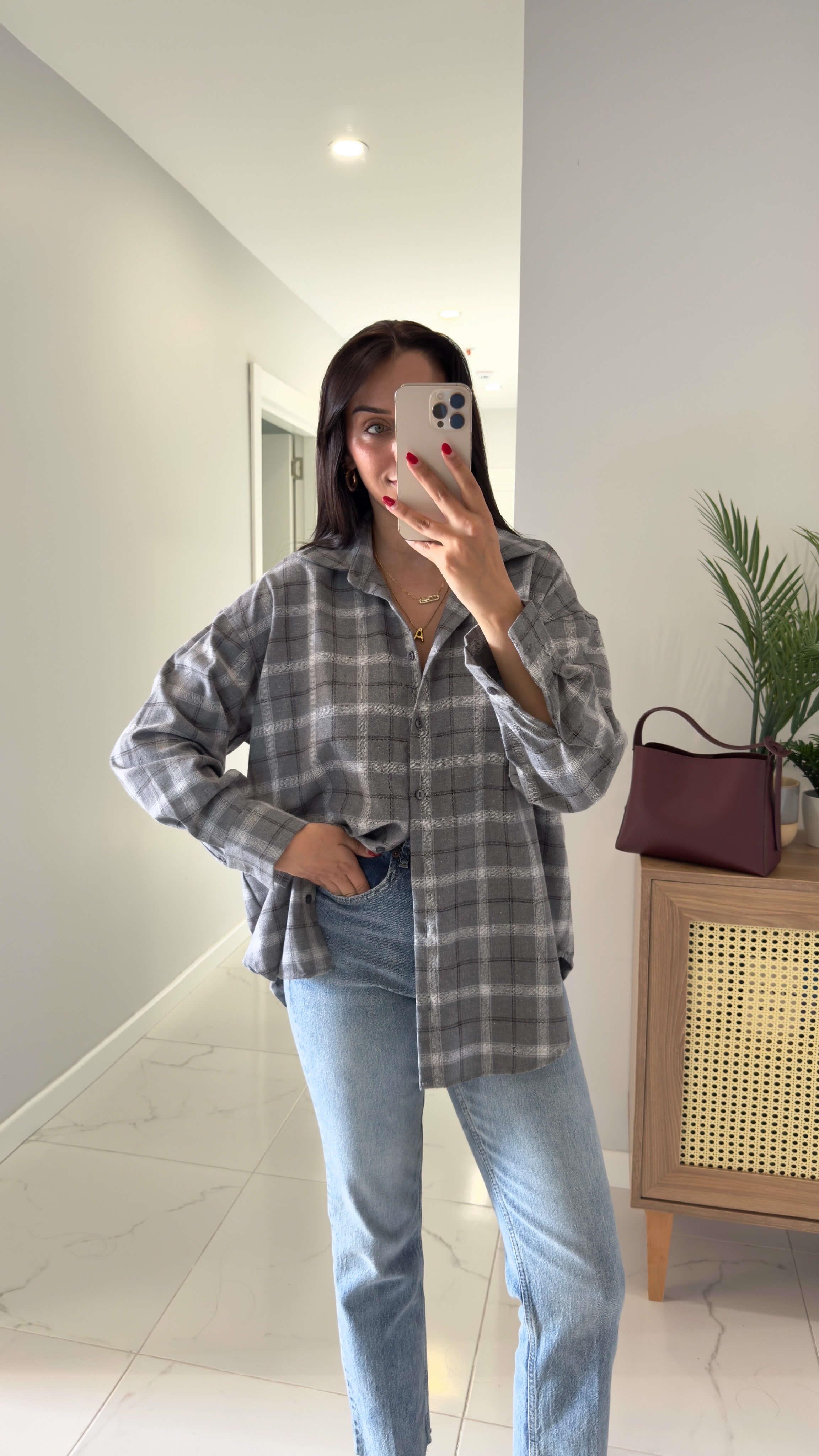 Jonlas Gri Ekru Ekoseli Gömlek (GMLK386-GRİEKR)
