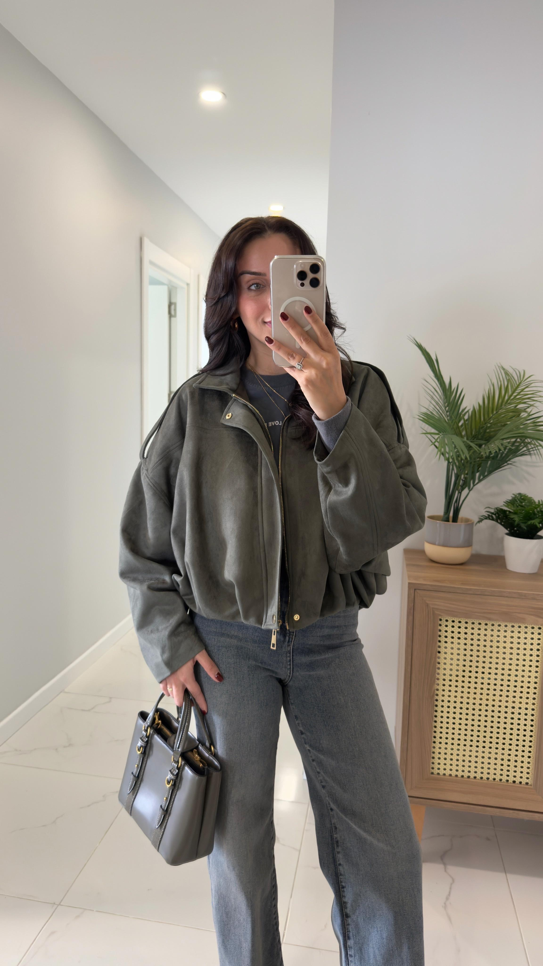 Julna Haki Yarasa Kol Süet Ceket