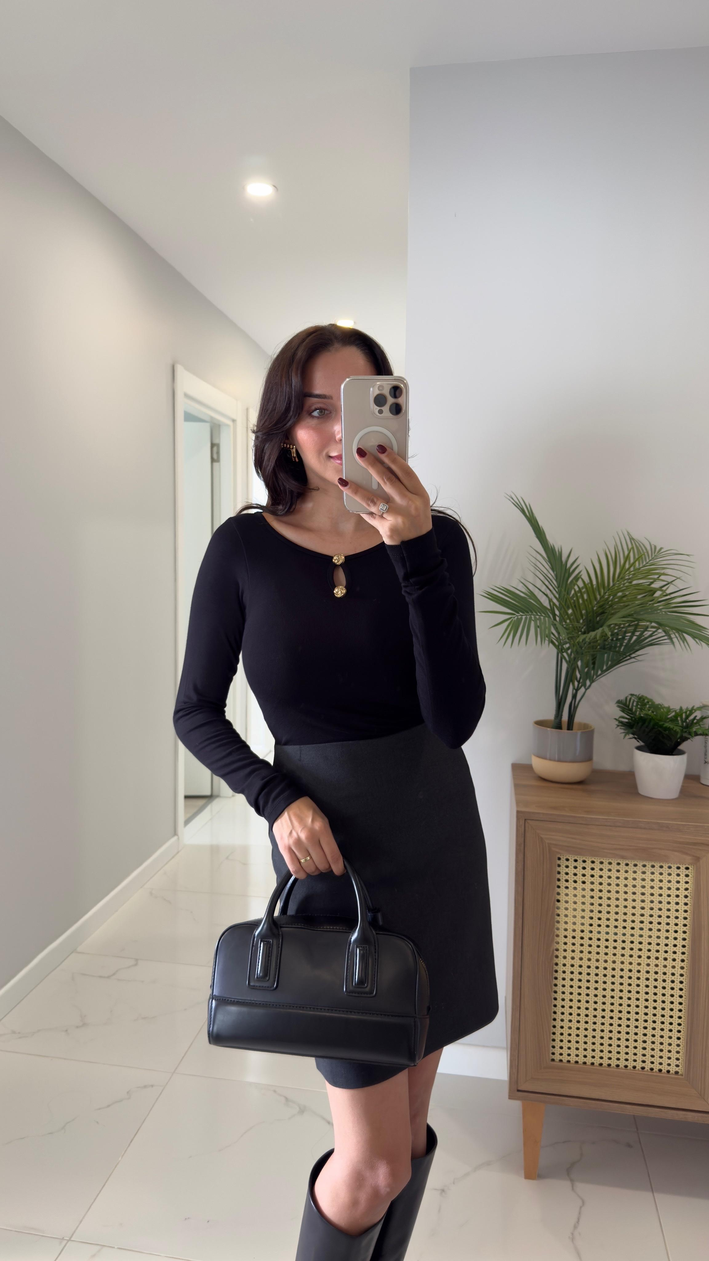 Kenry Siyah Gold Toka Detaylı Bluz (BLZ123-SYH)