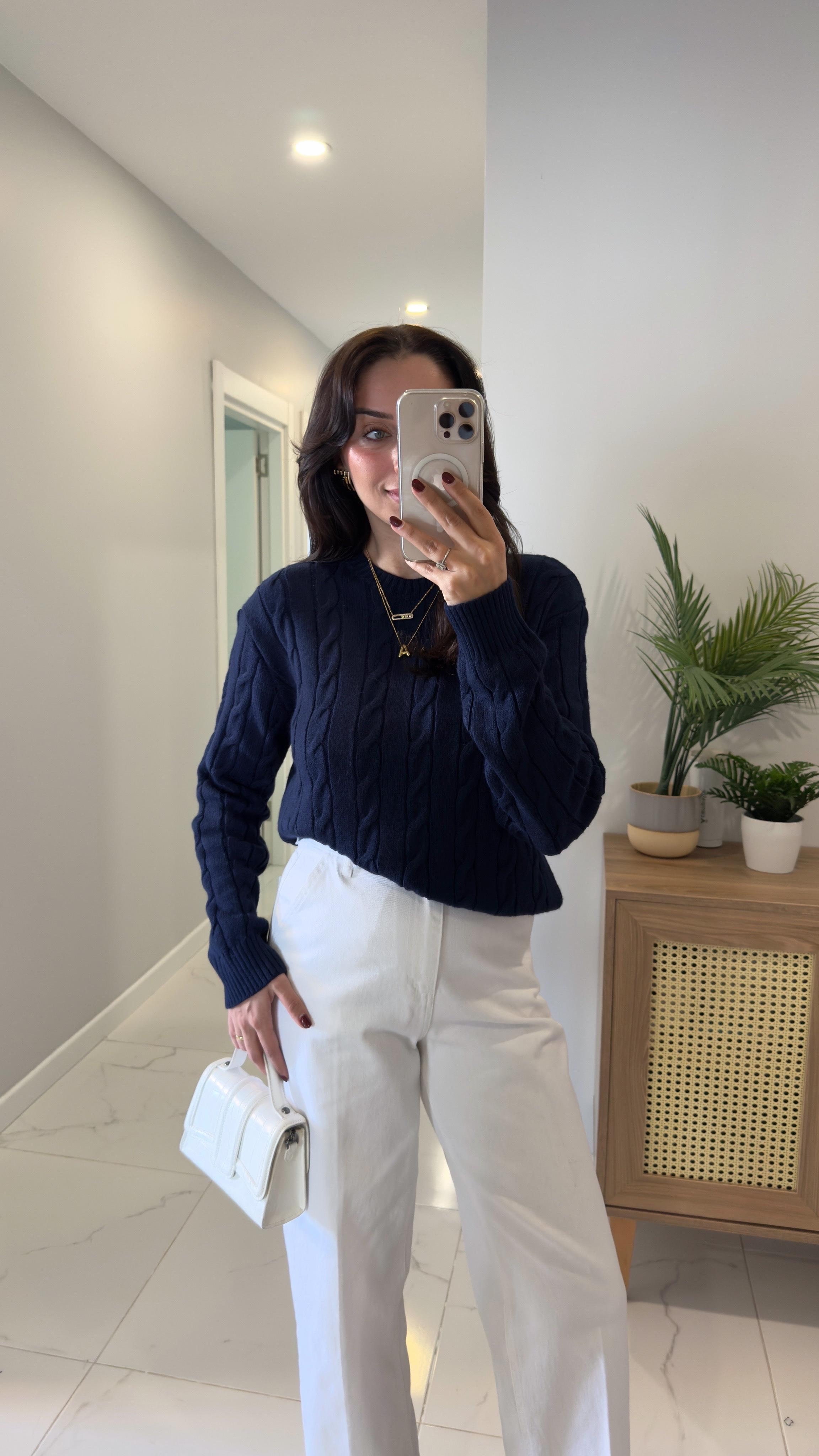Kornas Lacivert Saç Örgülü Triko Kazak (TRK585-LCVRT)