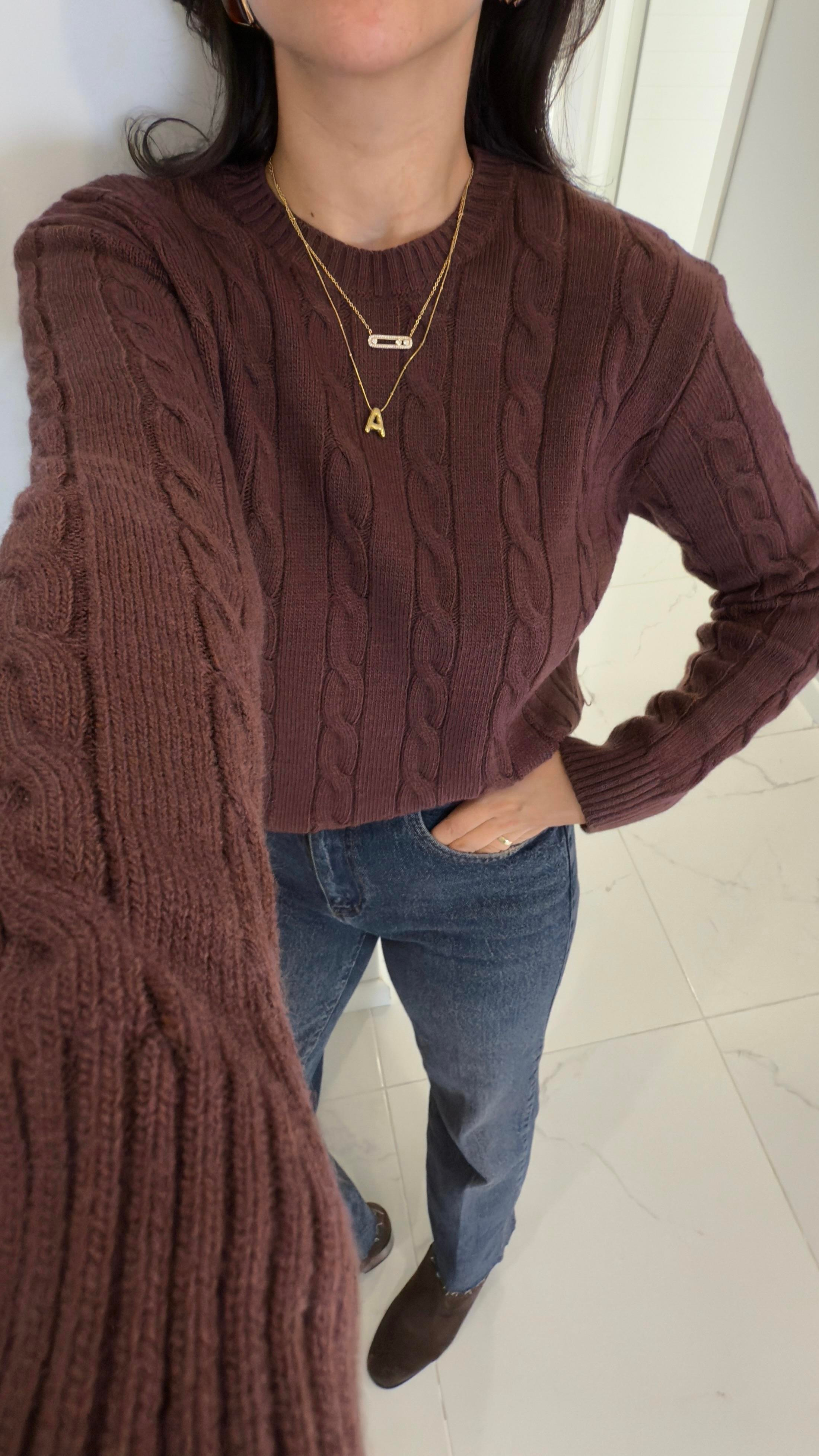 Kornas Vişne Çürüğü Saç Örgülü Triko Kazak
