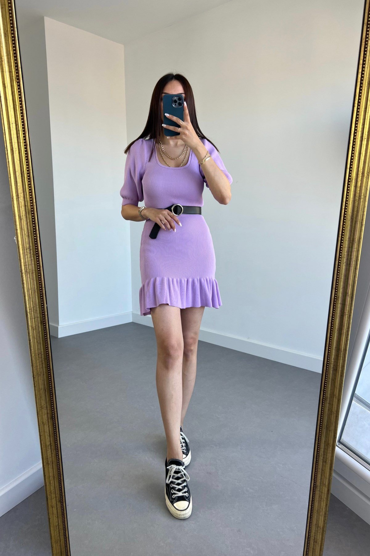 Lila Fitilli Balon Kol Triko Elbise (elbise19)