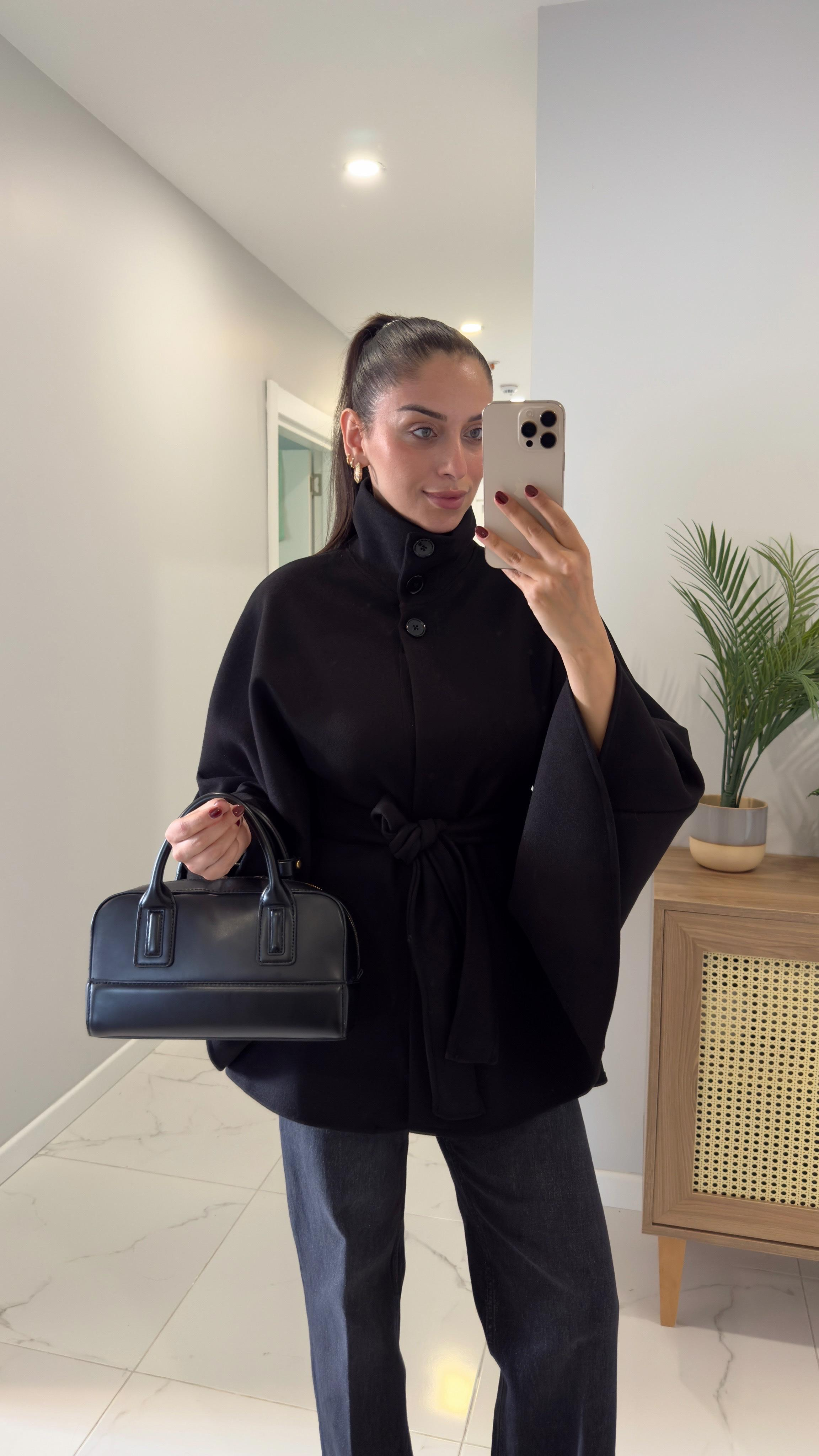 Luffy Siyah Kuşaklı Kaşe Panço (KBN027-SYH)