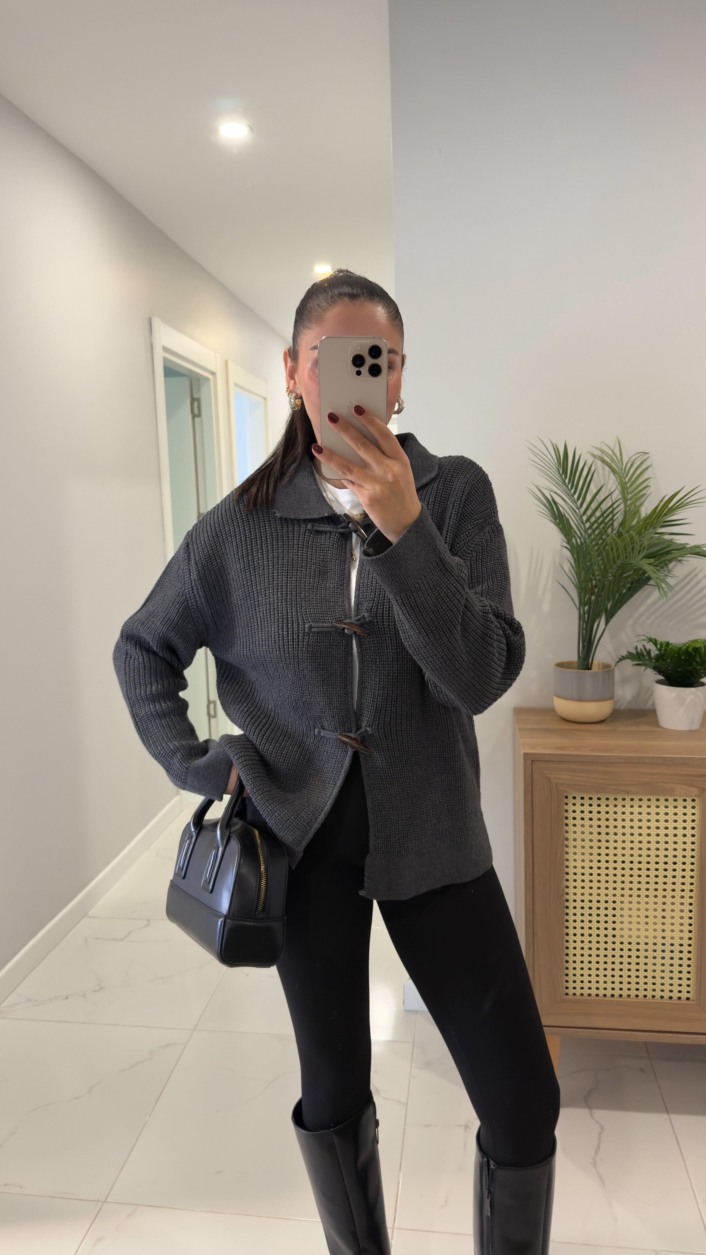 MD Hokka Antrasit Düğmeli Hırka