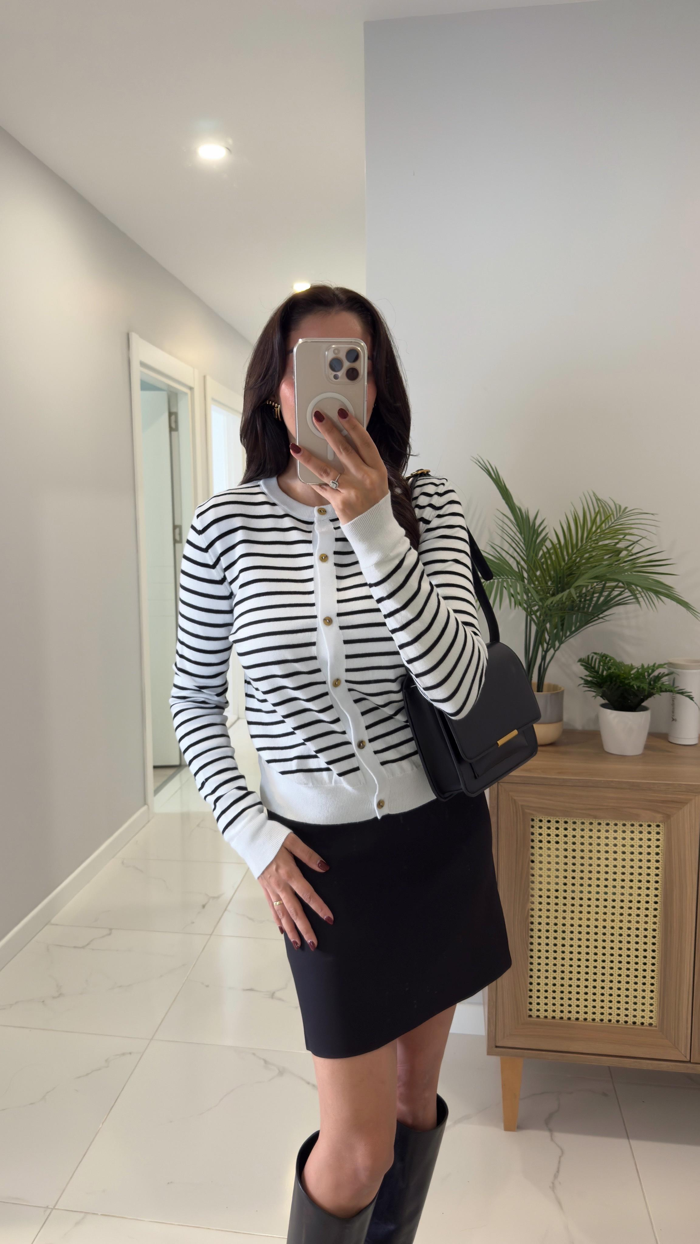 MD Wies Siyah Beyaz Çizgili Hırka
