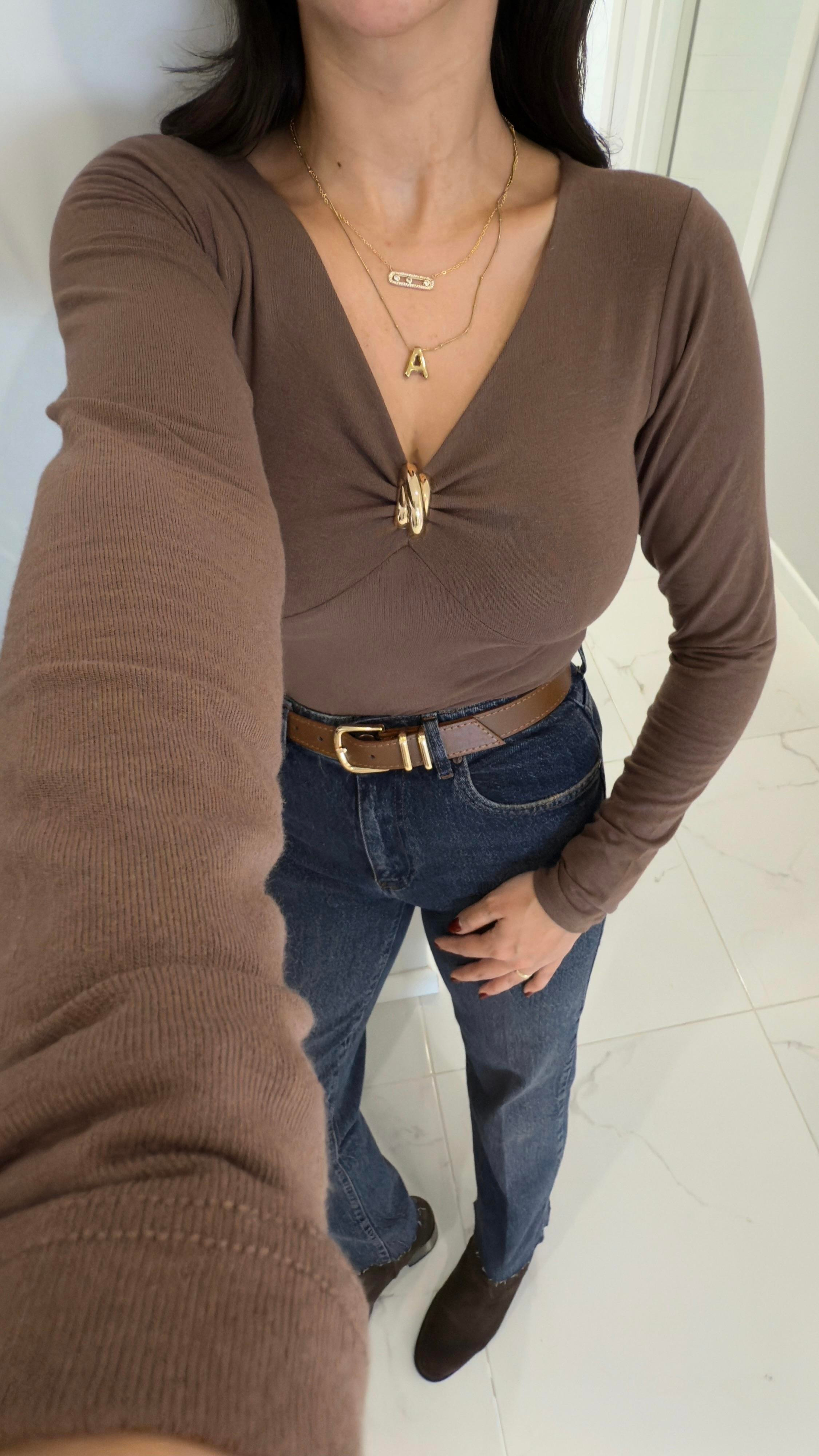 Moste Mocha Yakası Gold Toka Detaylı Bluz