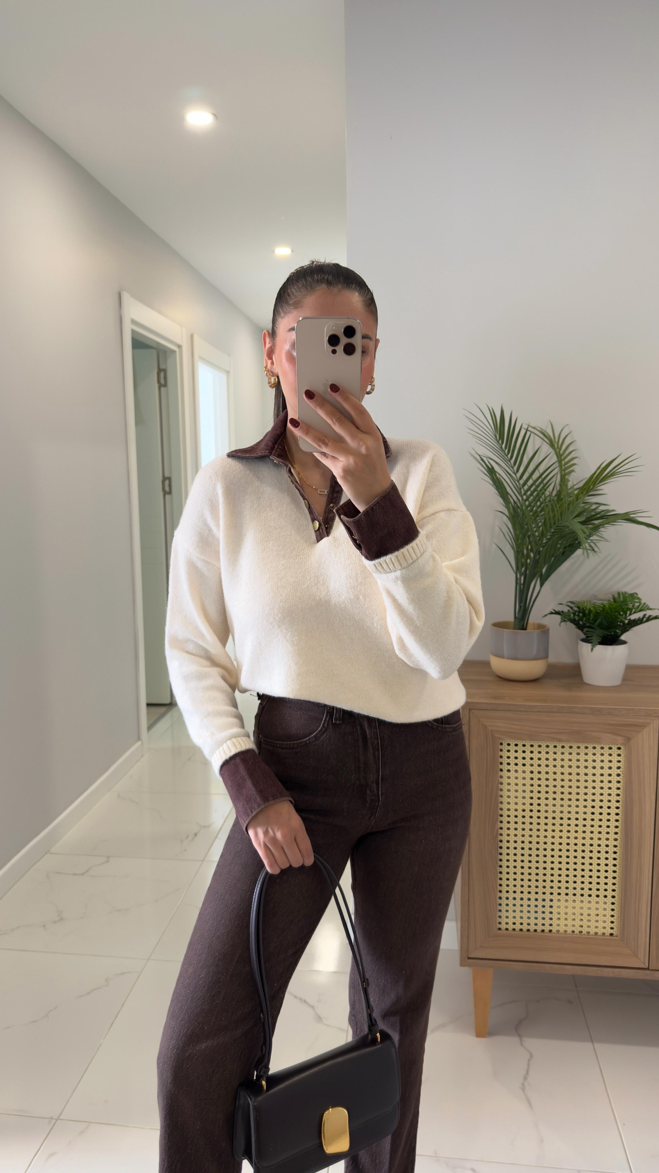 Orve Krem Kahve Kot Yaka Triko (TRK559-KRMKHV)