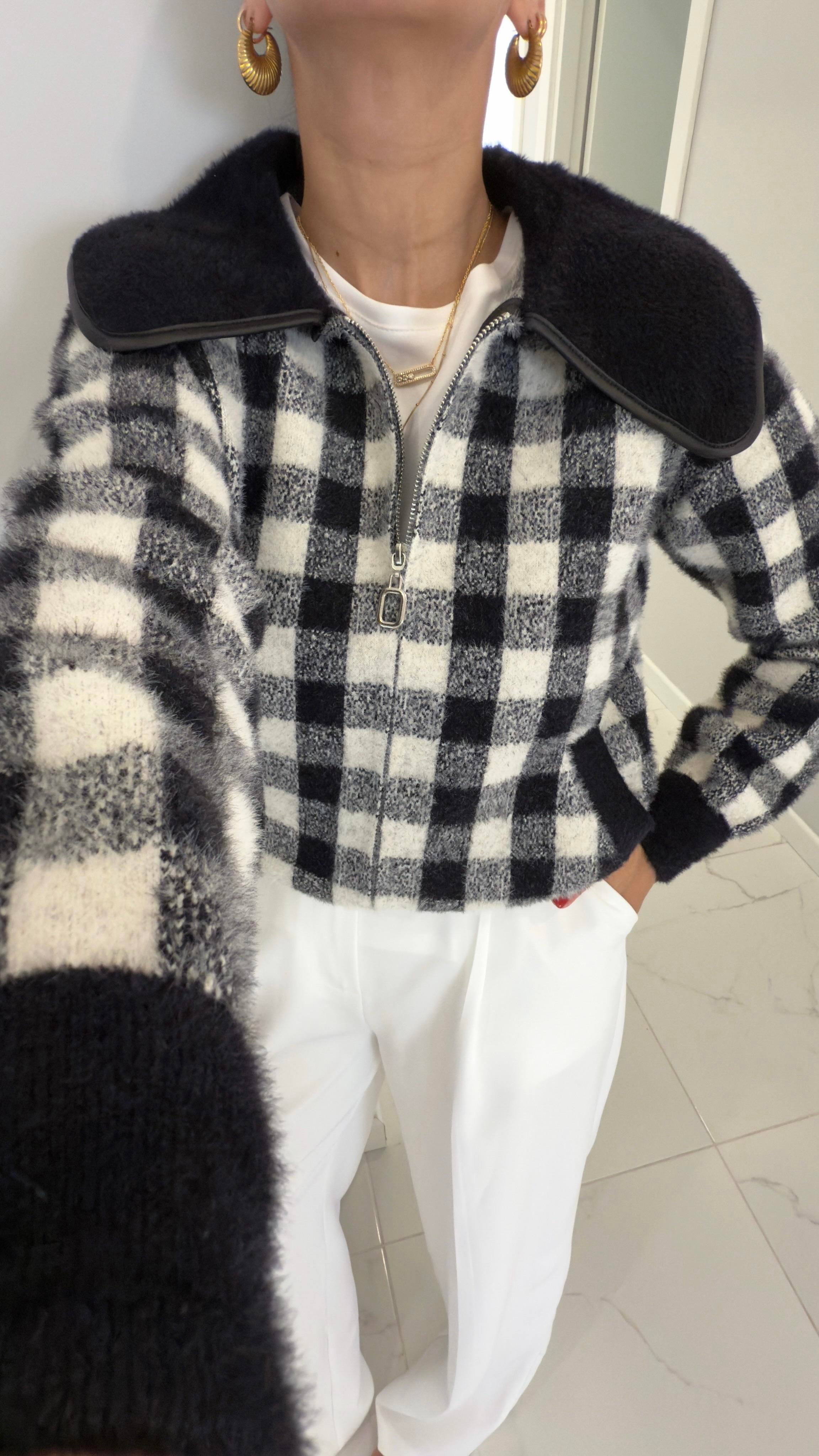 Panso Siyah Beyaz Desenli Yaka Detaylı Ceket