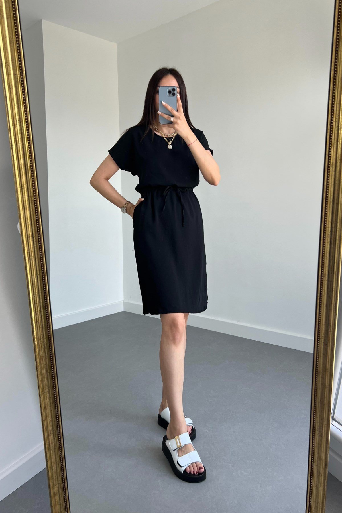 Siyah Beli Bağlamalı Elbise (elbise06)