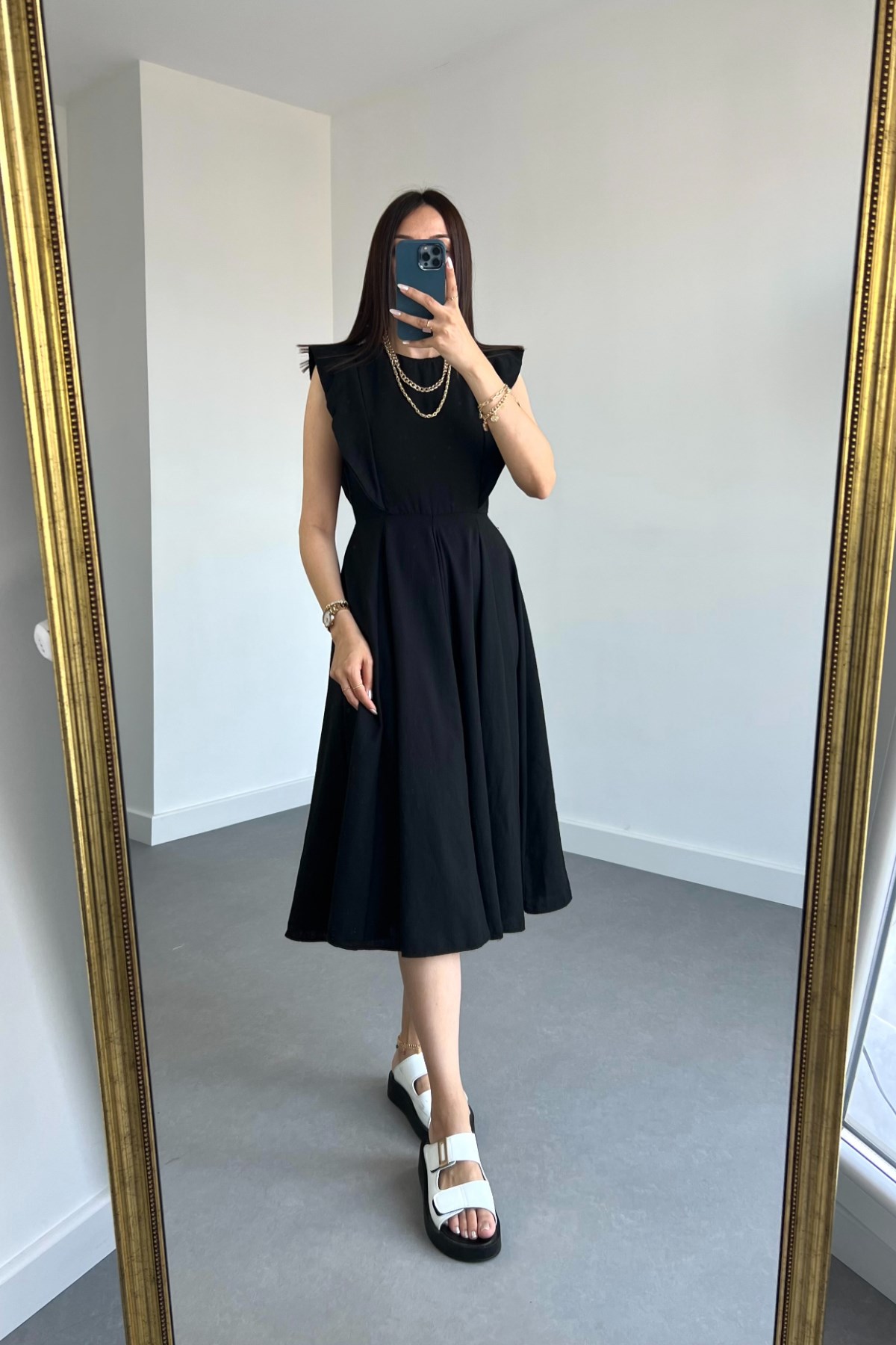 Siyah Önü Fırfırlı Keten Müslin Elbise (elbise4)