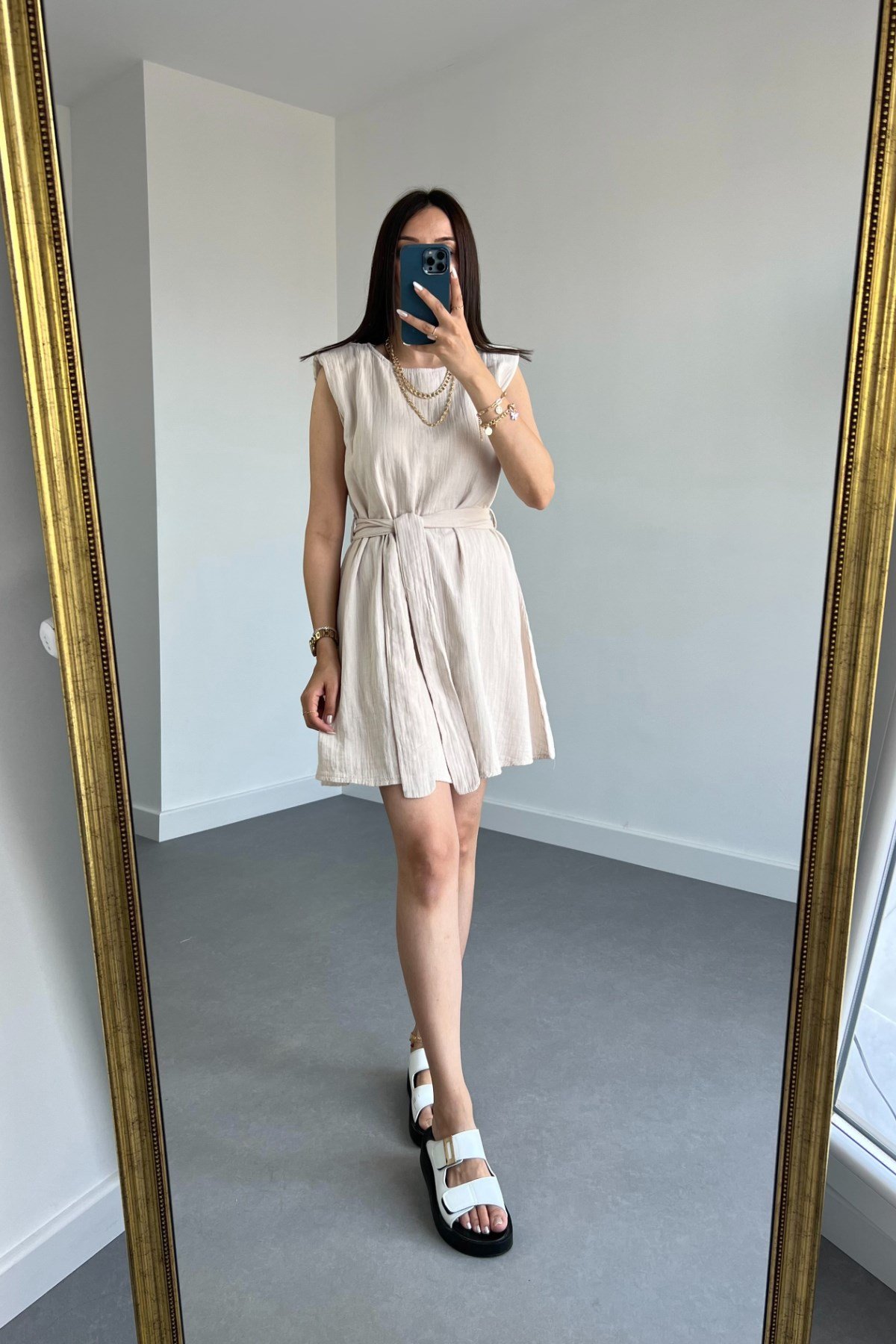 Taş Keten Vatkalı Kuşaklı Elbise (elbise2)