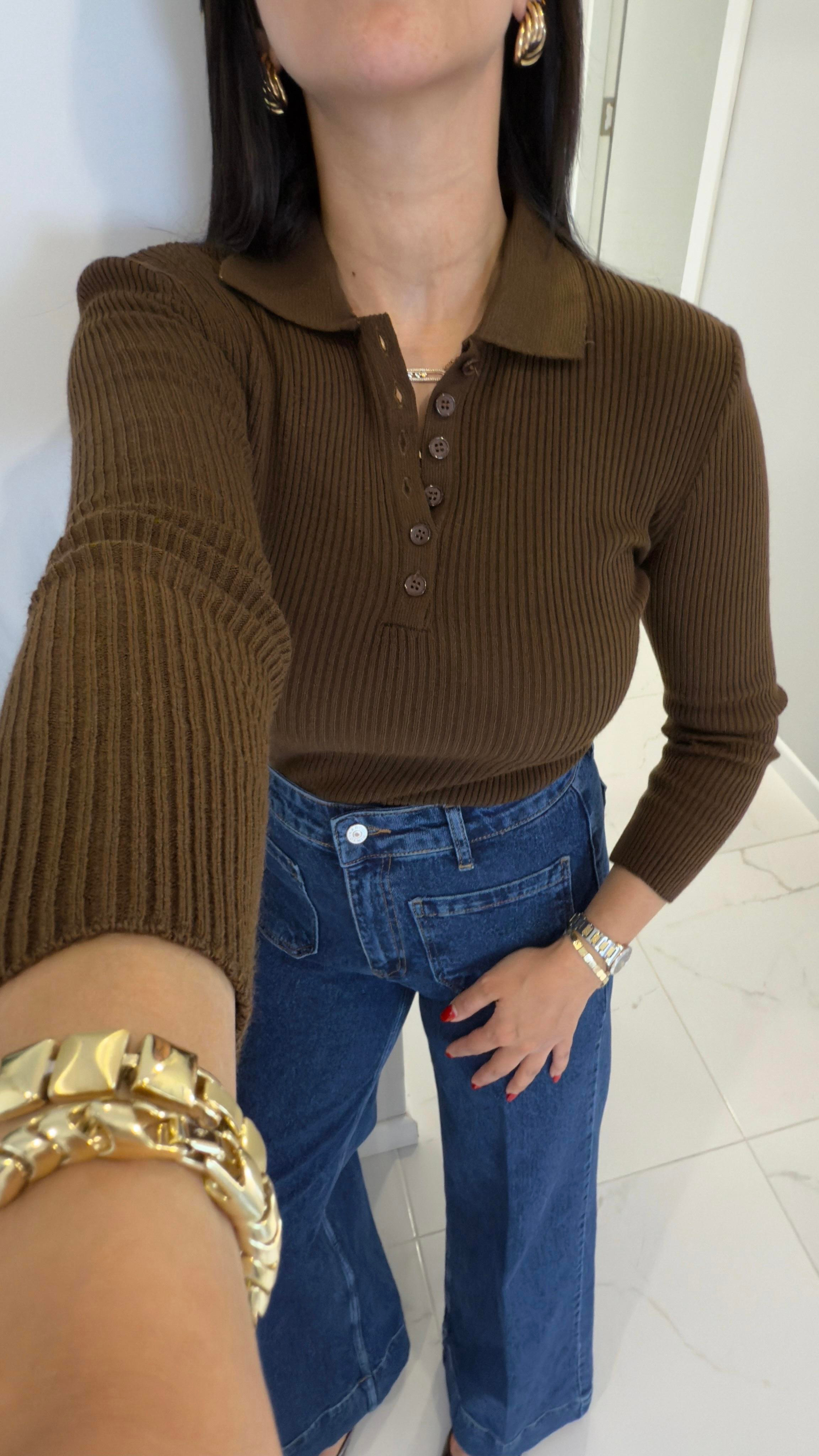 Unwera Kahve Polo Yaka Fitilli Triko (TRK539-KHV)