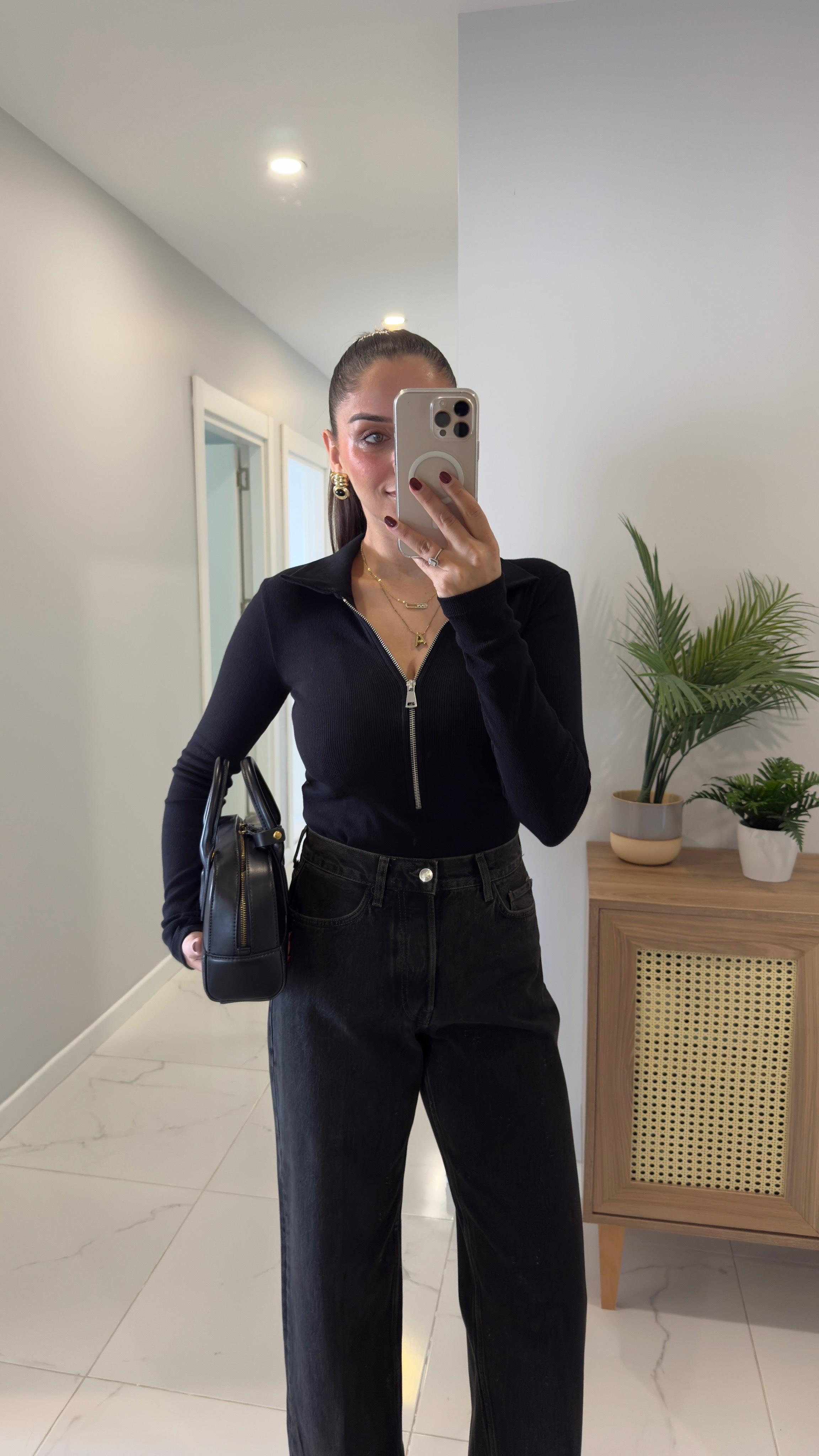 Ursa Siyah Fermuarlı Polo Yaka Bluz (BLZ125-SYH)