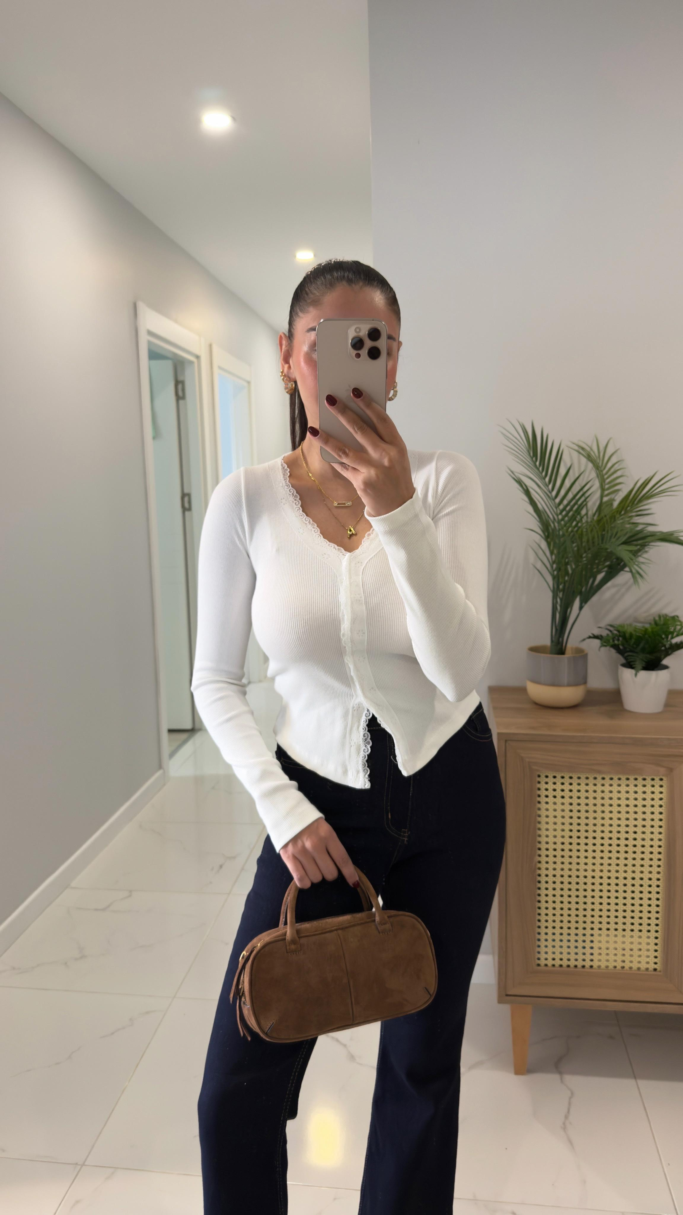 Velori Açık Ekru Dantel Detaylı Fitilli Bluz
