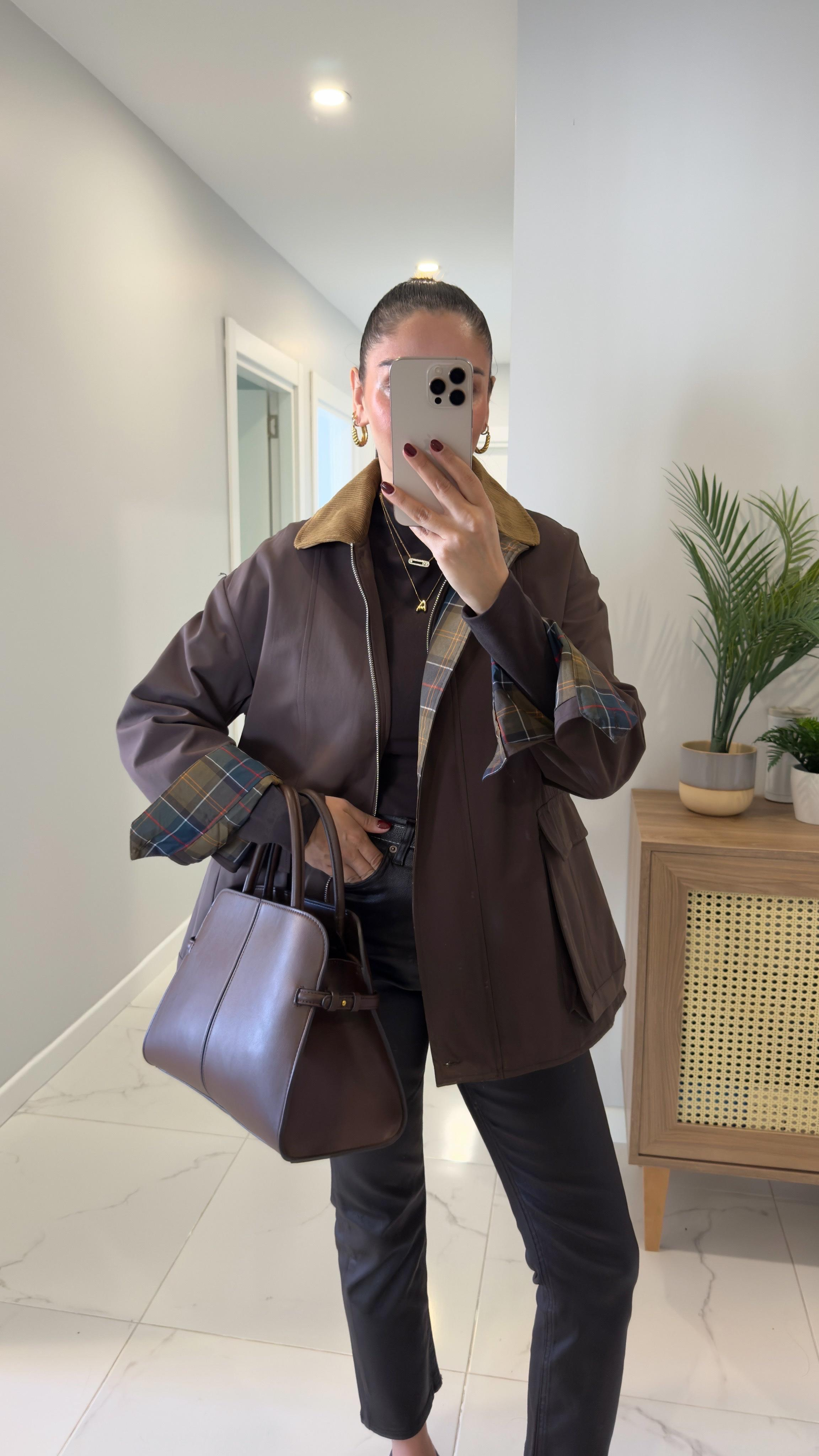 Virena Acı Kahve Kadife Yaka Cepli Ceket (CKT158-ACKHV)