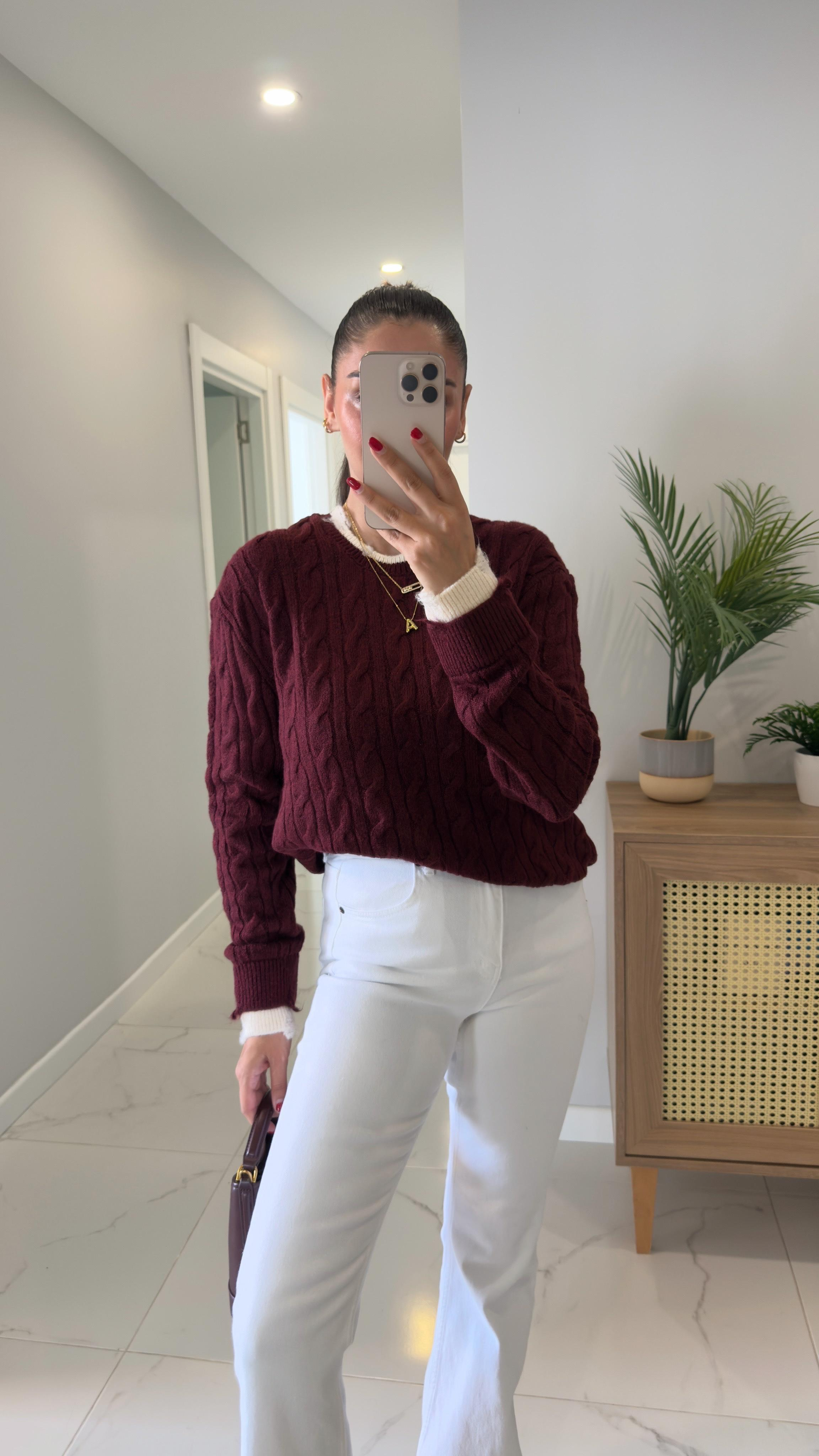 Yonsa Bordo Krem Örgü Triko (TRK541-BRD)