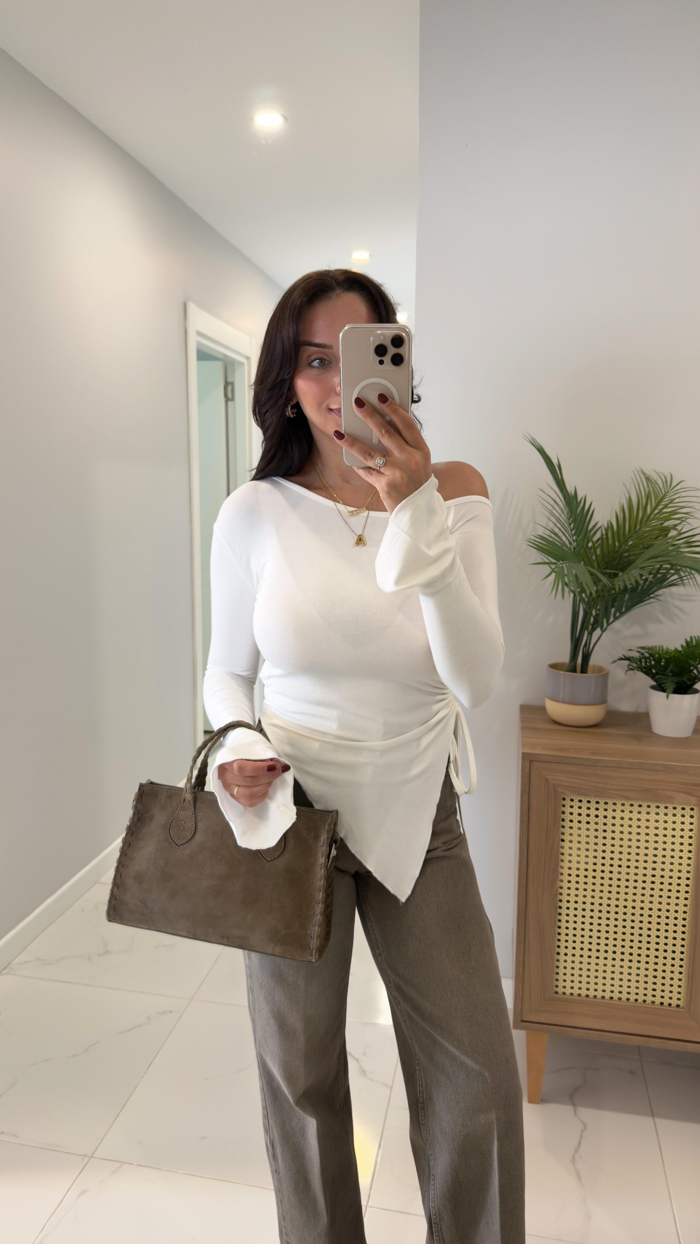 Yuki Ekru Omuzu Açık Bluz (BLZ122-EKR)